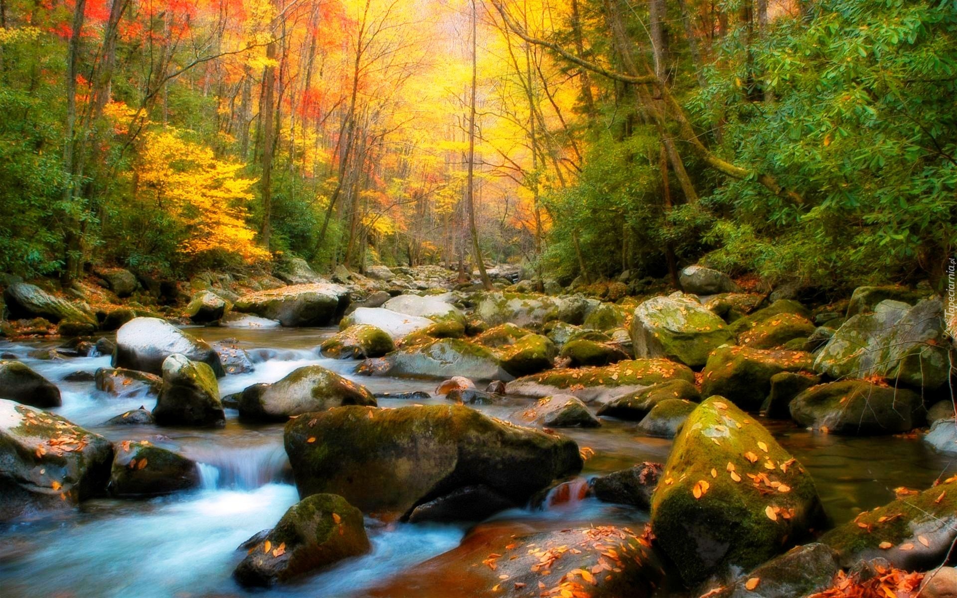 Edytor tapety: Rzeka, Kamienie, Las