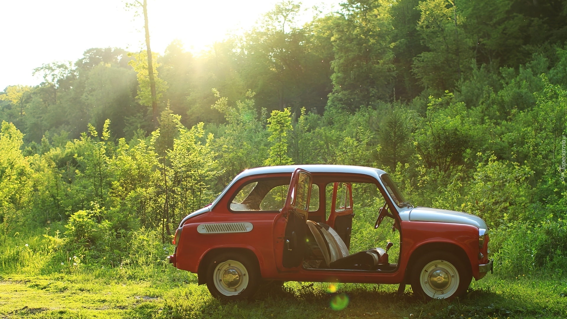 Edytor tapety: Zabytkowy, Zaporożec, Las, Promienie Słońca
