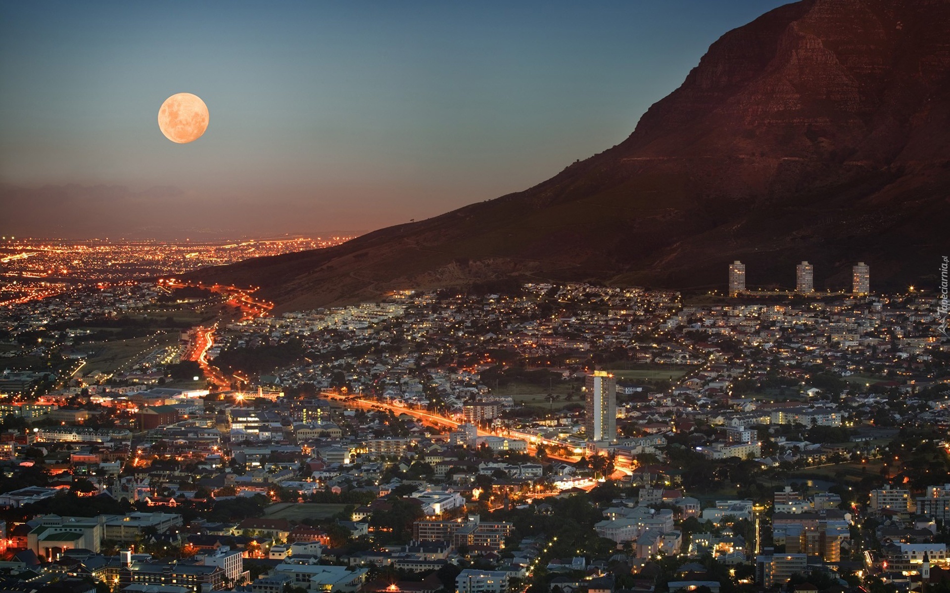 Edytor tapety: Republika Południowej Afryki, Kapsztad, Miasto, Noc, Góra