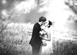 Edytor tapety: Para, Młoda, Ślub, Wiązanka, Kwiaty, Pocałunek, Rozmycie