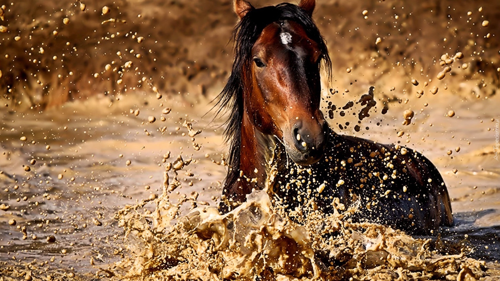 Edytor tapety: Koń, Rozbryzgująca, Woda