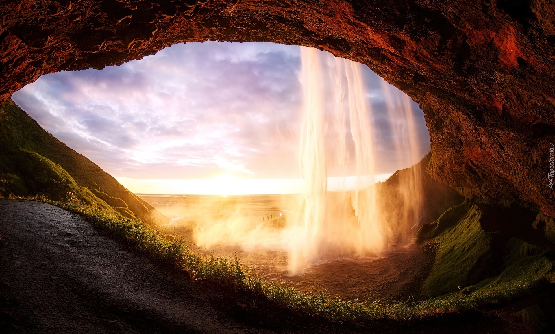 Edytor tapety: Wodospad, Jaskinia, Niebo