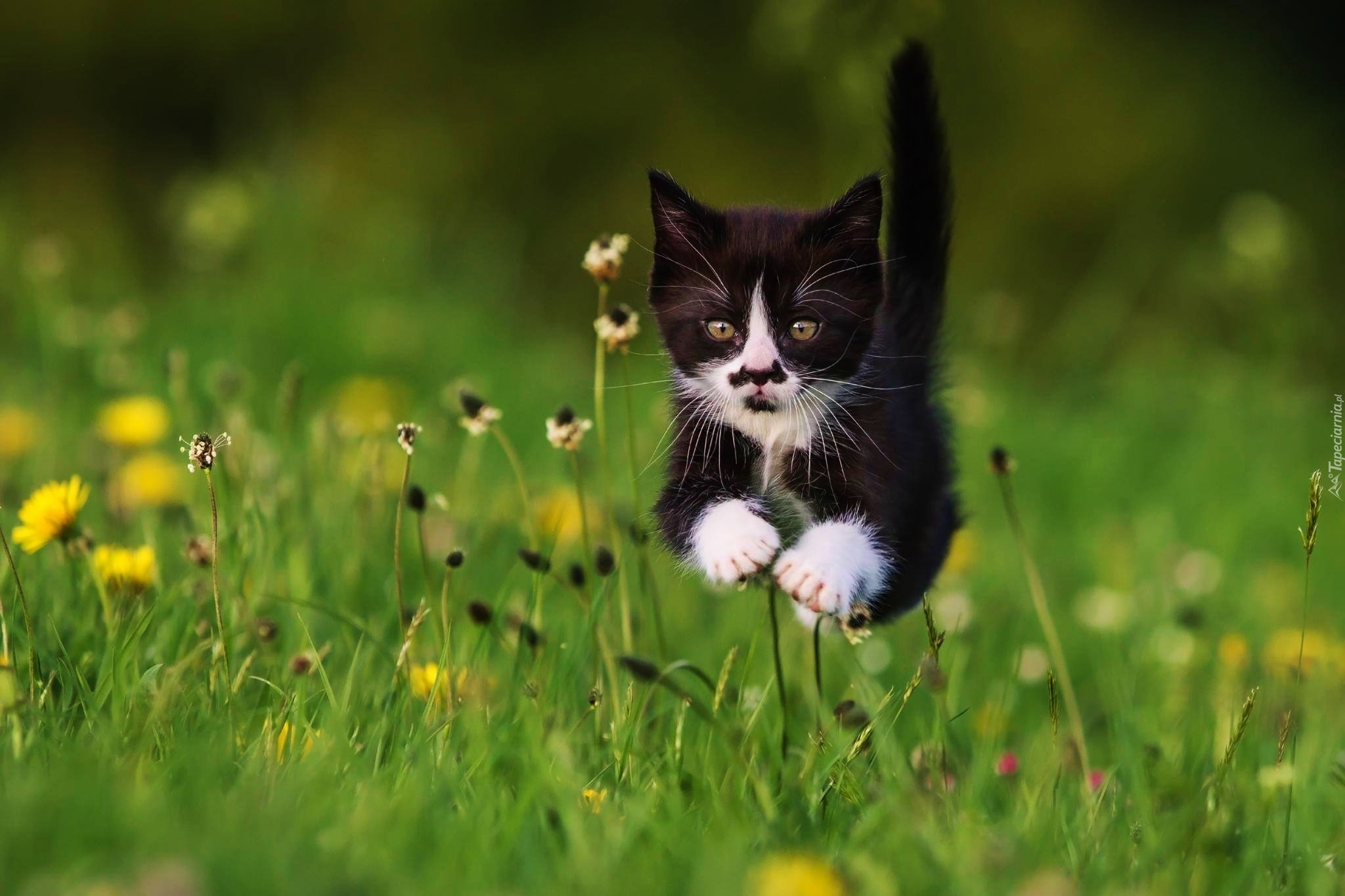 Edytor tapety: Czarny, Kotek, Skok, Trawa