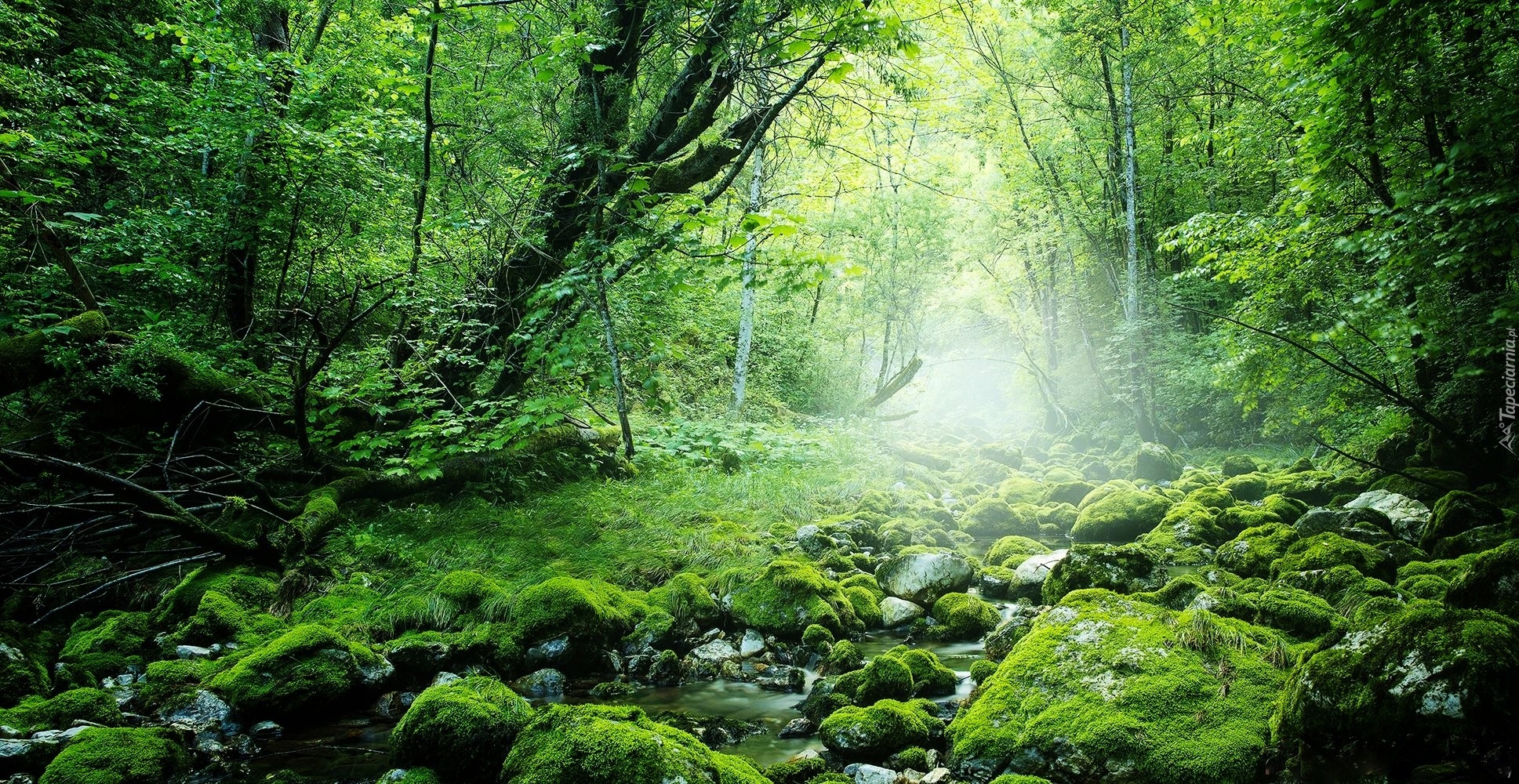 Edytor tapety: Potok, Omszone, Kamienie, Las