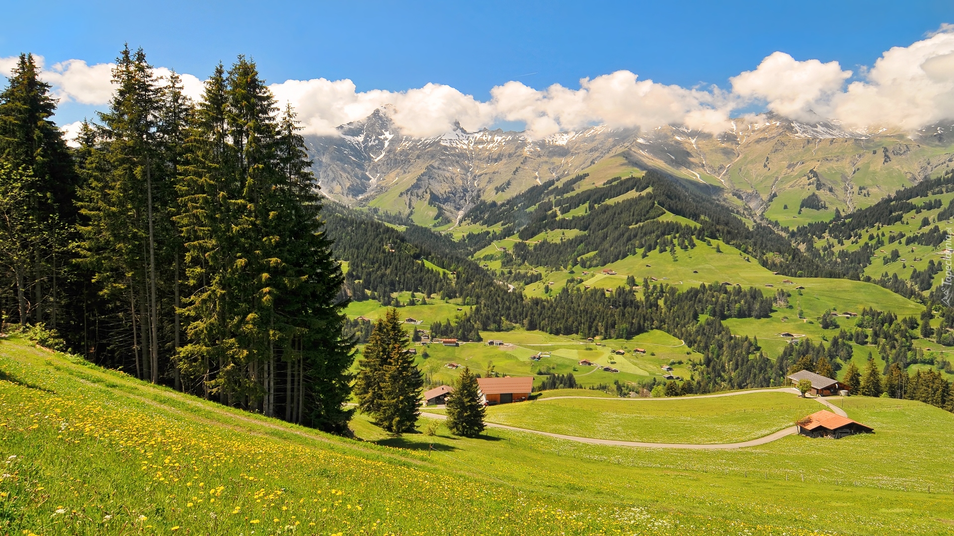 Edytor tapety: Alpy, Austriackie, Lasy, Łąki, Zagrody