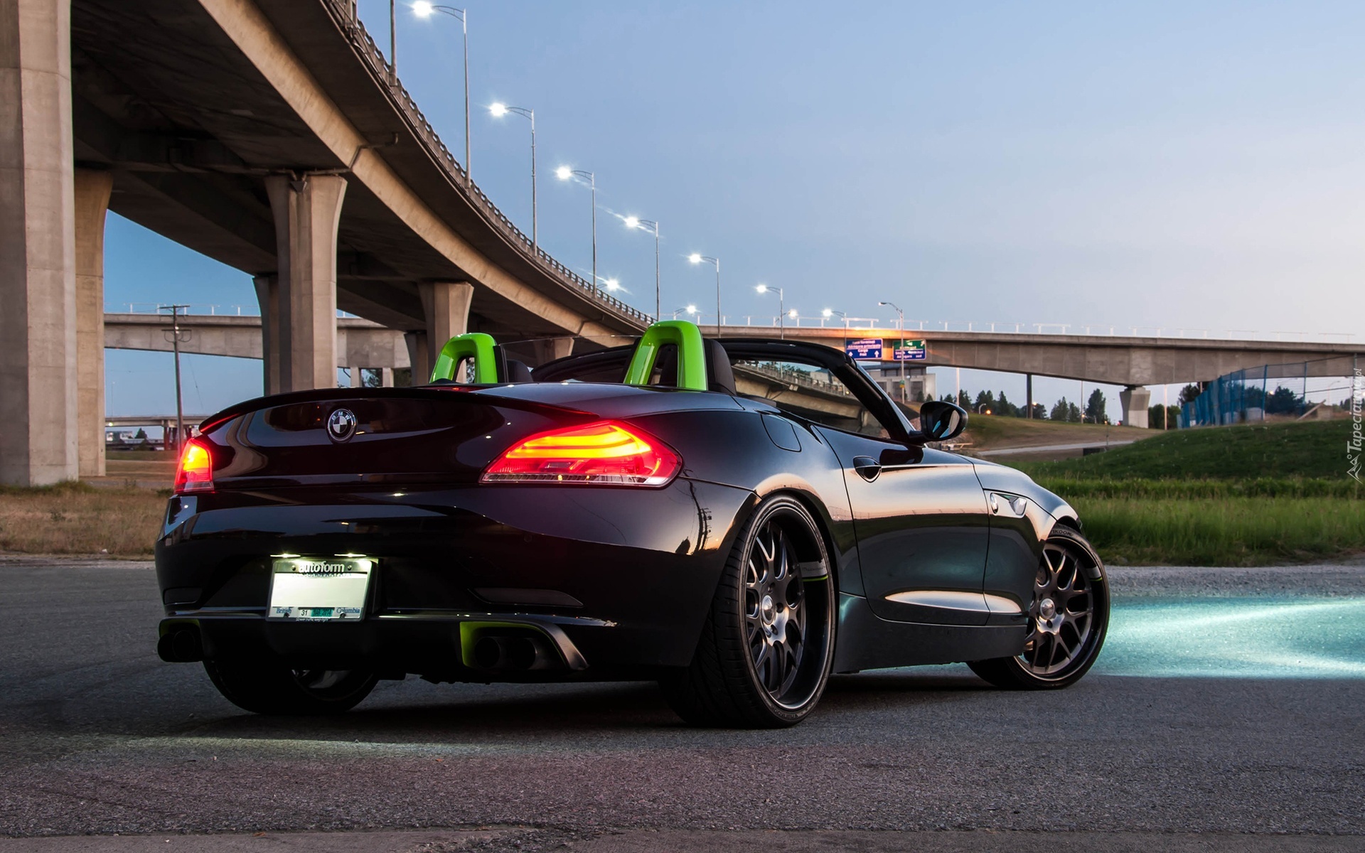 Edytor tapety: Czarne, BMW, Wiadukt, Latarnie, Drogi