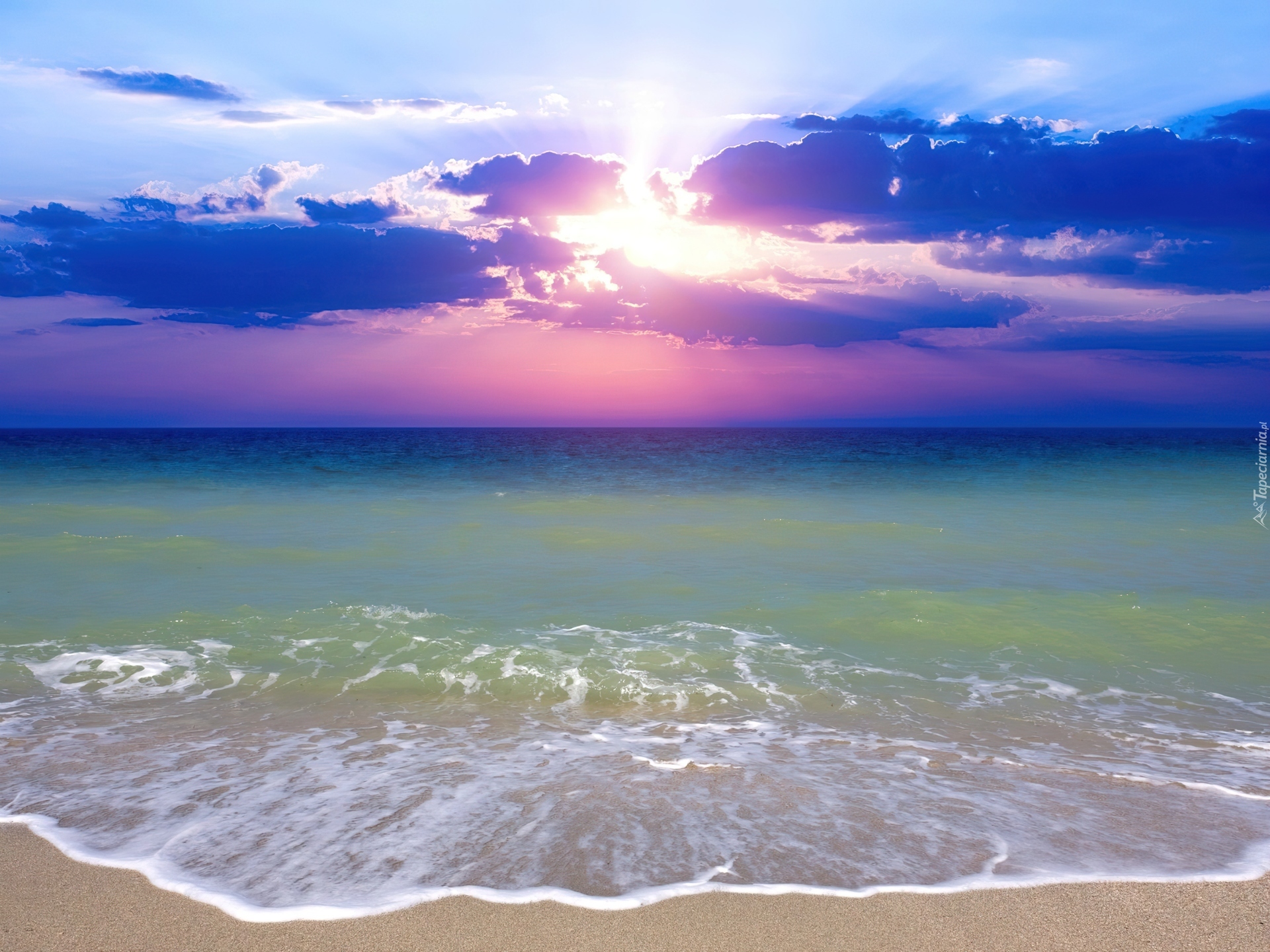 Edytor tapety: Morze, Fale, Plaża, Chmury, Zachód, Słońca