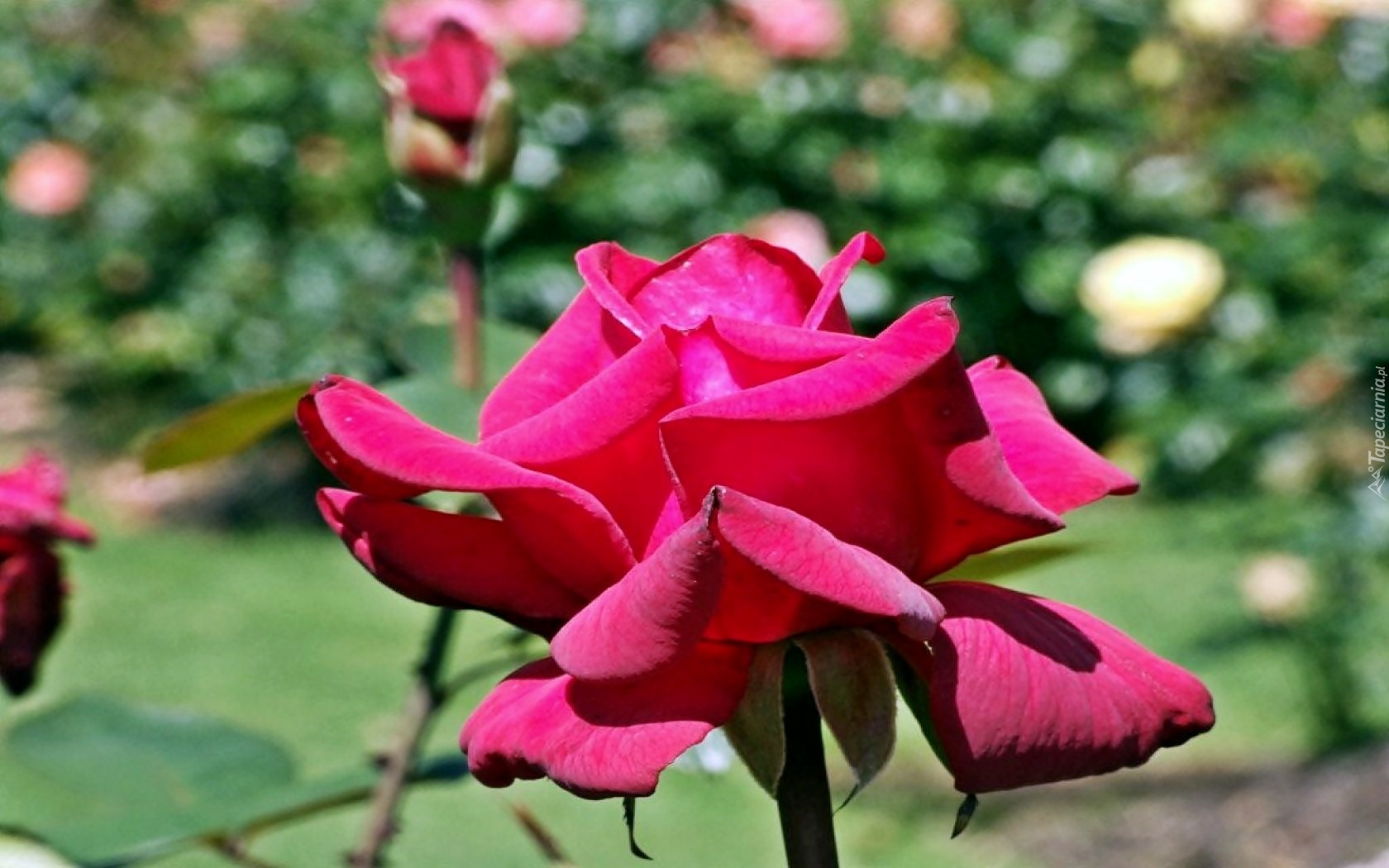 Edytor tapety: Czerwona, Róża, Ogród, Rozmycie