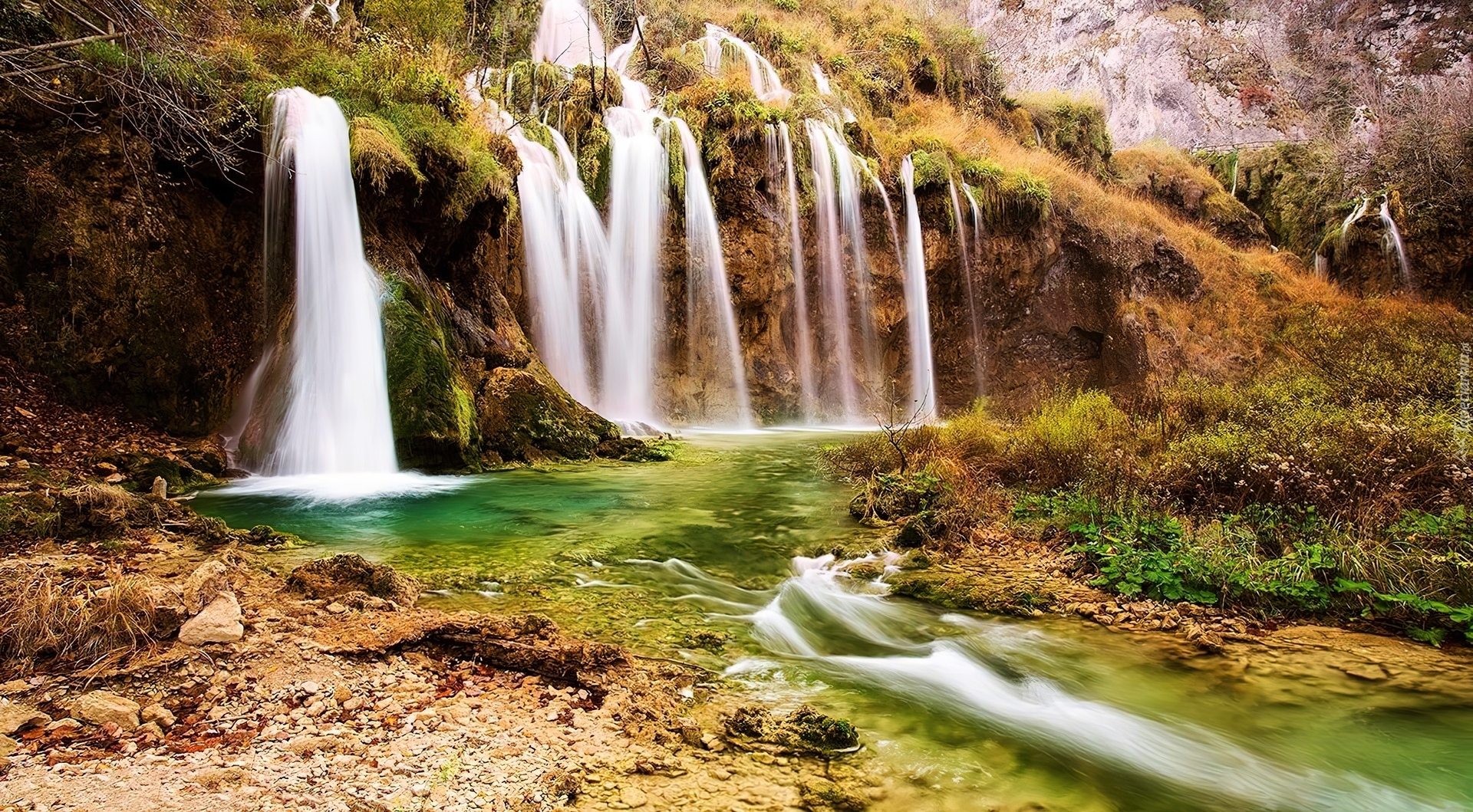 Edytor tapety: Wodospad, Rzeczka, Roślinność
