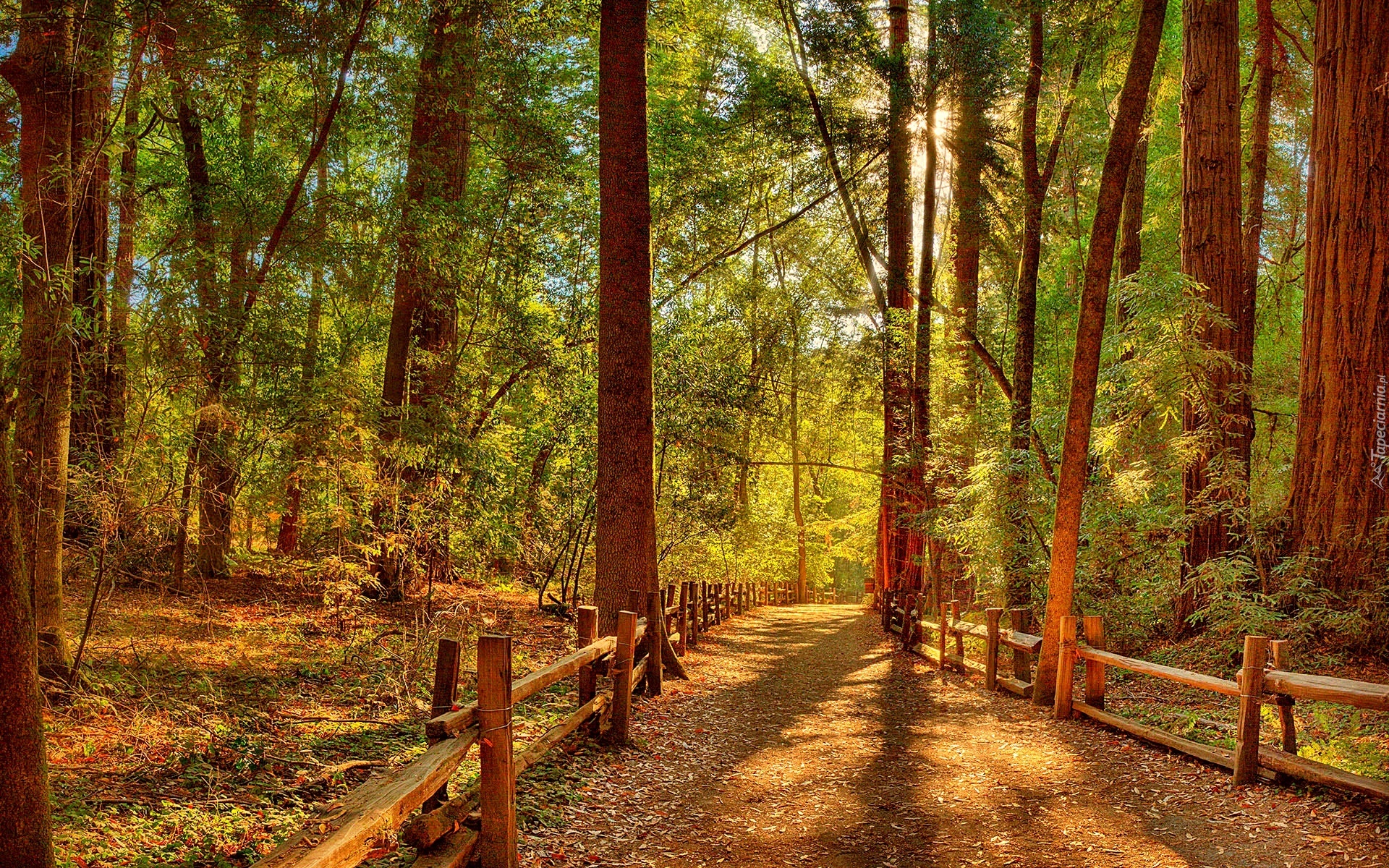 Edytor tapety: Droga, Las, Promienie Słońca