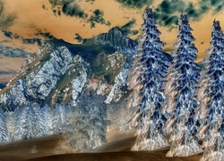 Edytor tapety: Zima, Góry, Las, Ośnieżone, Świerki