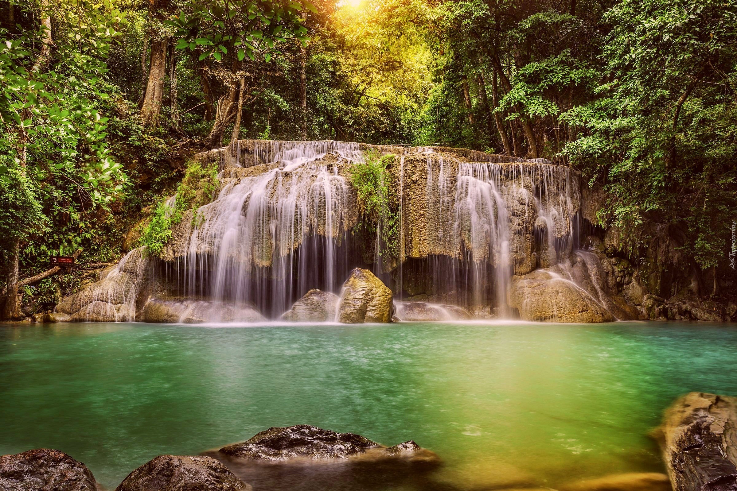 Edytor tapety: Las, Wodospad, Przebijające, Światło