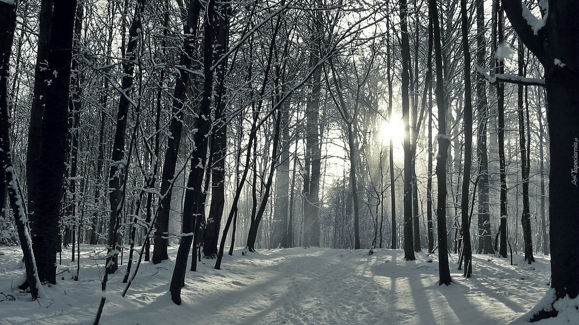 Edytor tapety: Zima, Las, Droga, Przebijające, Światło