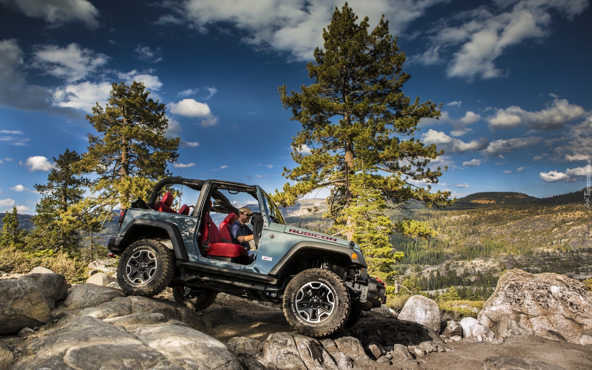 Edytor tapety: Jeep, Wrangler, Drzewa, Kamienie, Chmury