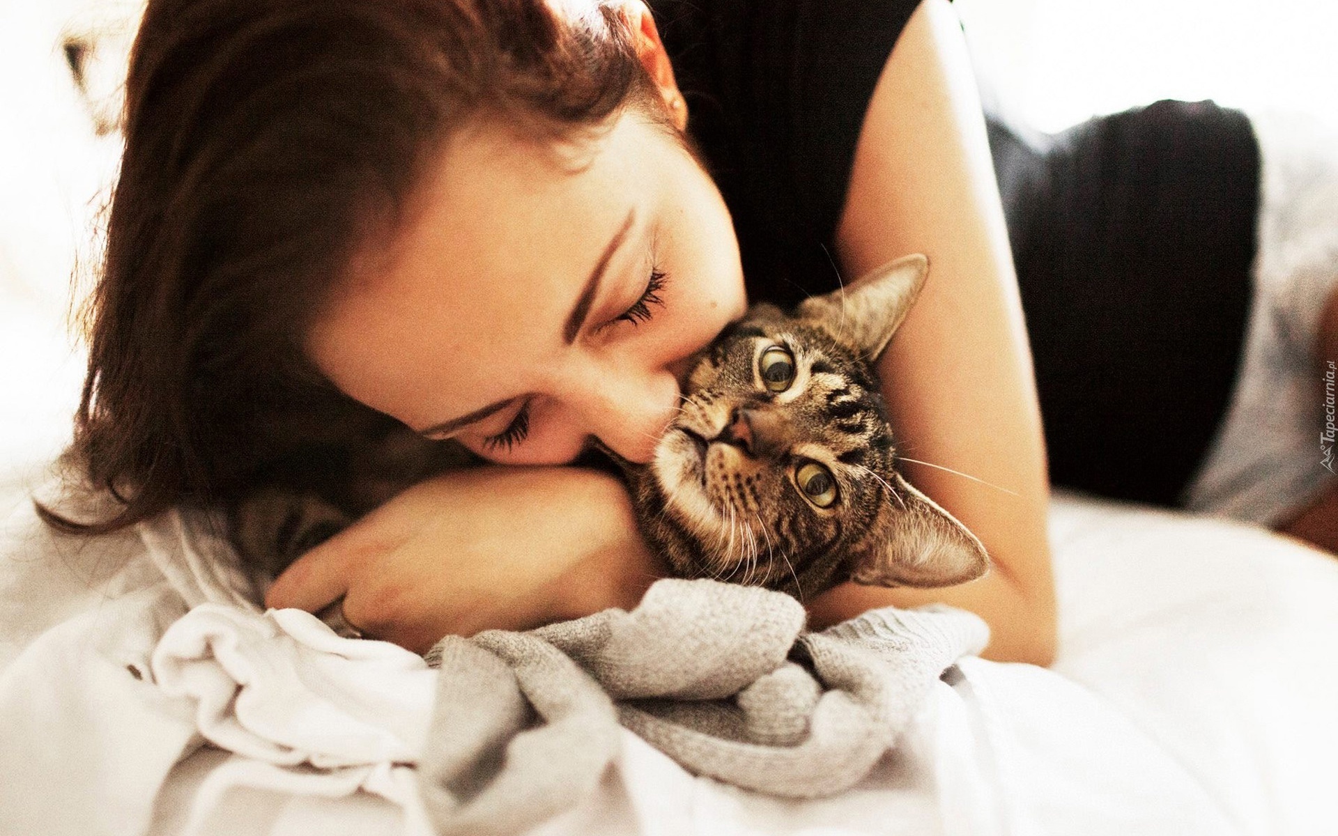Edytor tapety: Śpiąca, Kobieta, Kot, Mordka