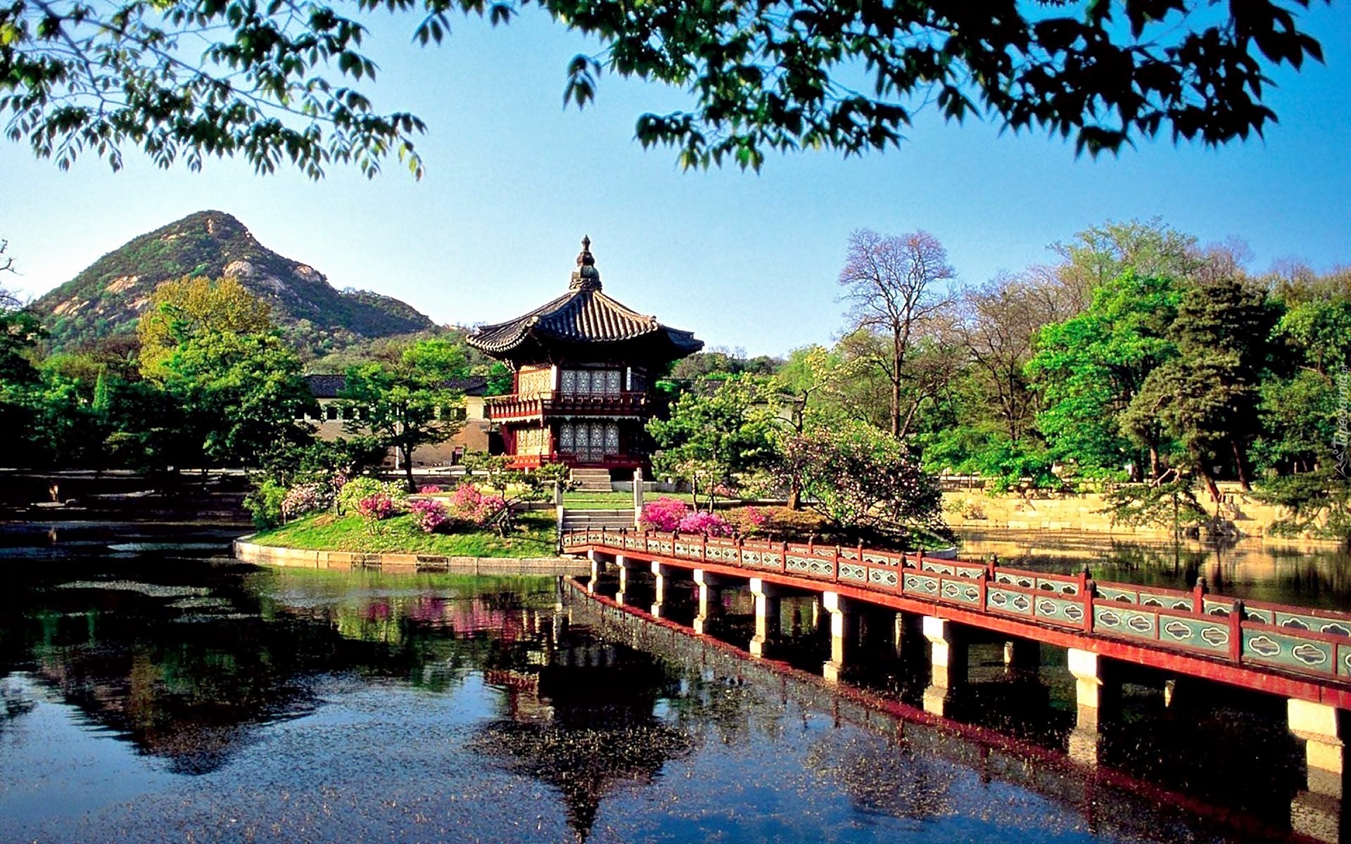 Edytor tapety: Miasto, Changwon, Pawilon, Jong, Park, Jezioro, Most