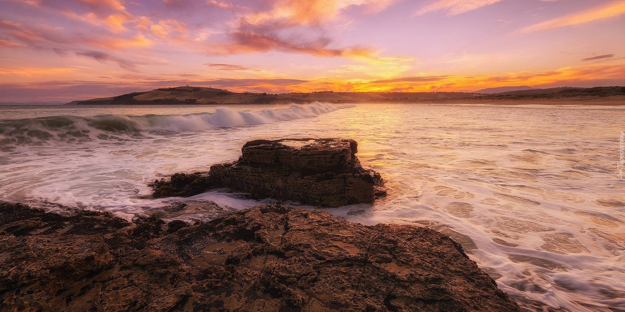 Edytor tapety: Zachód, Słońca, Skały, Rzeka