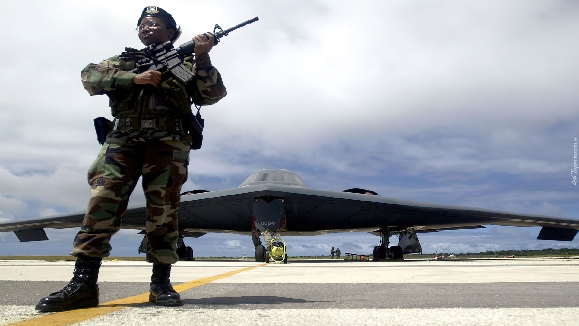 Edytor tapety: Żołnierz, Kobieta, Karabin, Bombowiec, B-2 Spirit