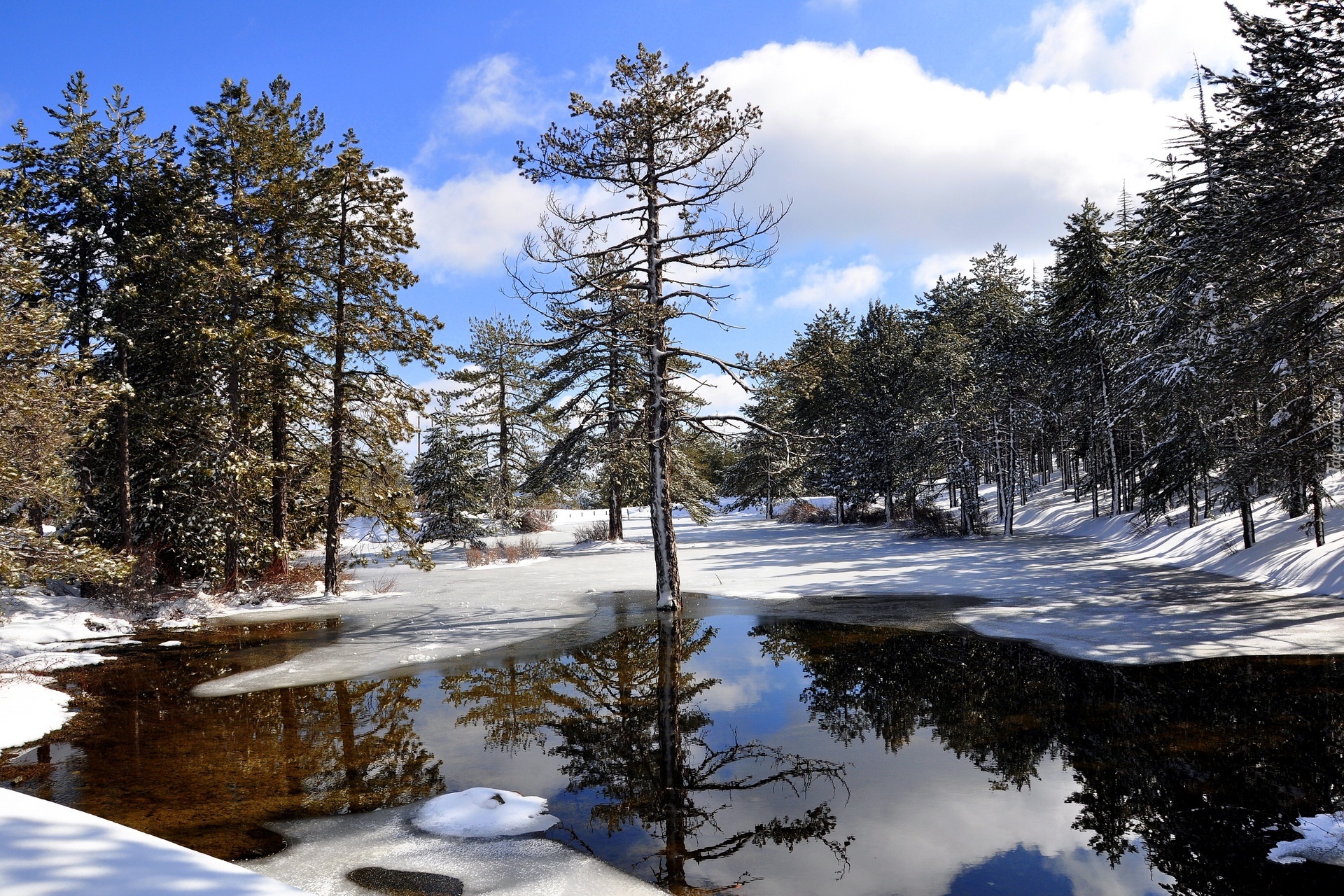 Edytor tapety: Jezioro, Śnieg, Drzewa