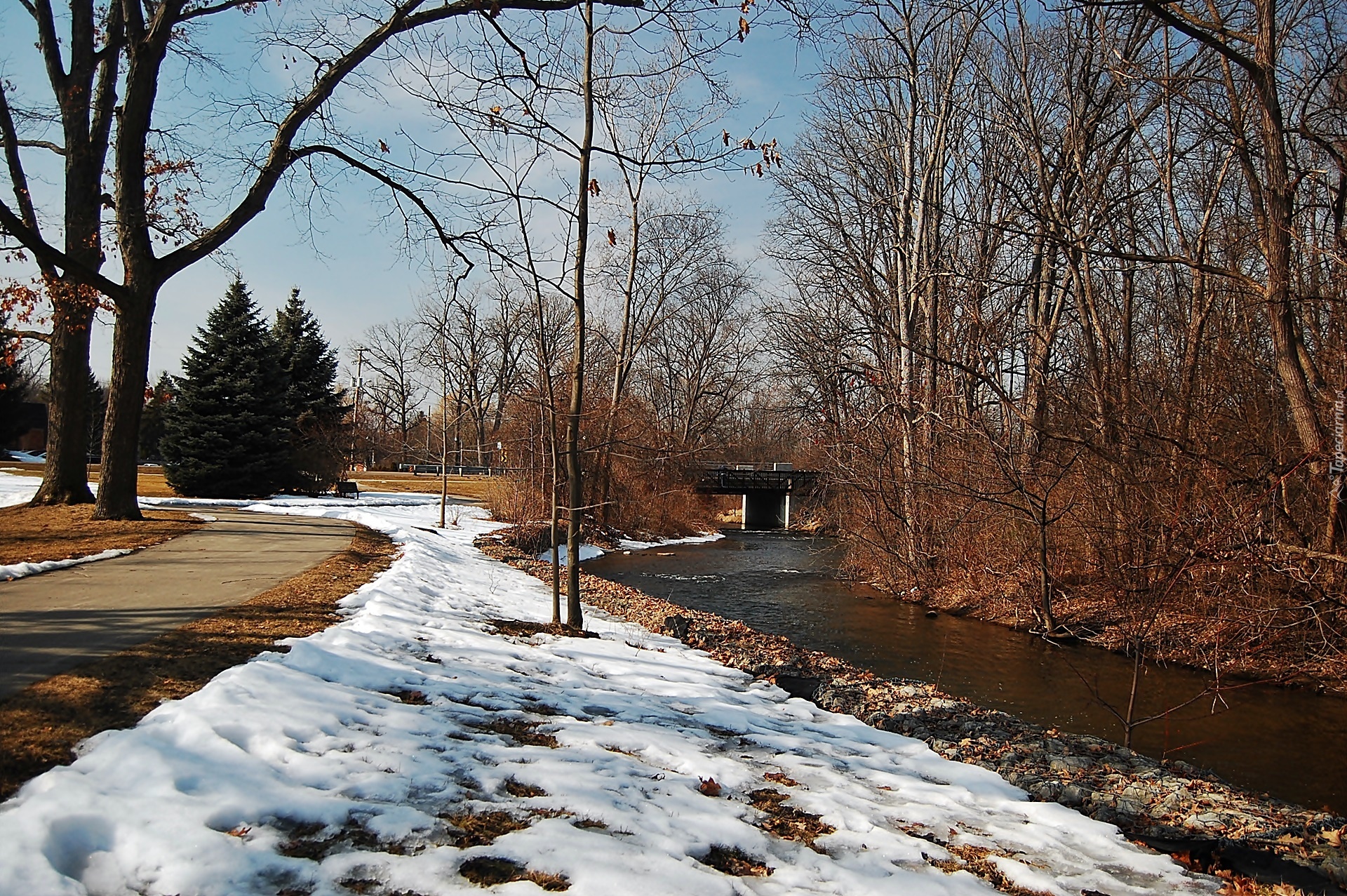 Edytor tapety: Zima, Park, Rzeka, Most
