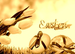 Edytor tapety: Tulipany, Napis, Jajka, Wielkanoc