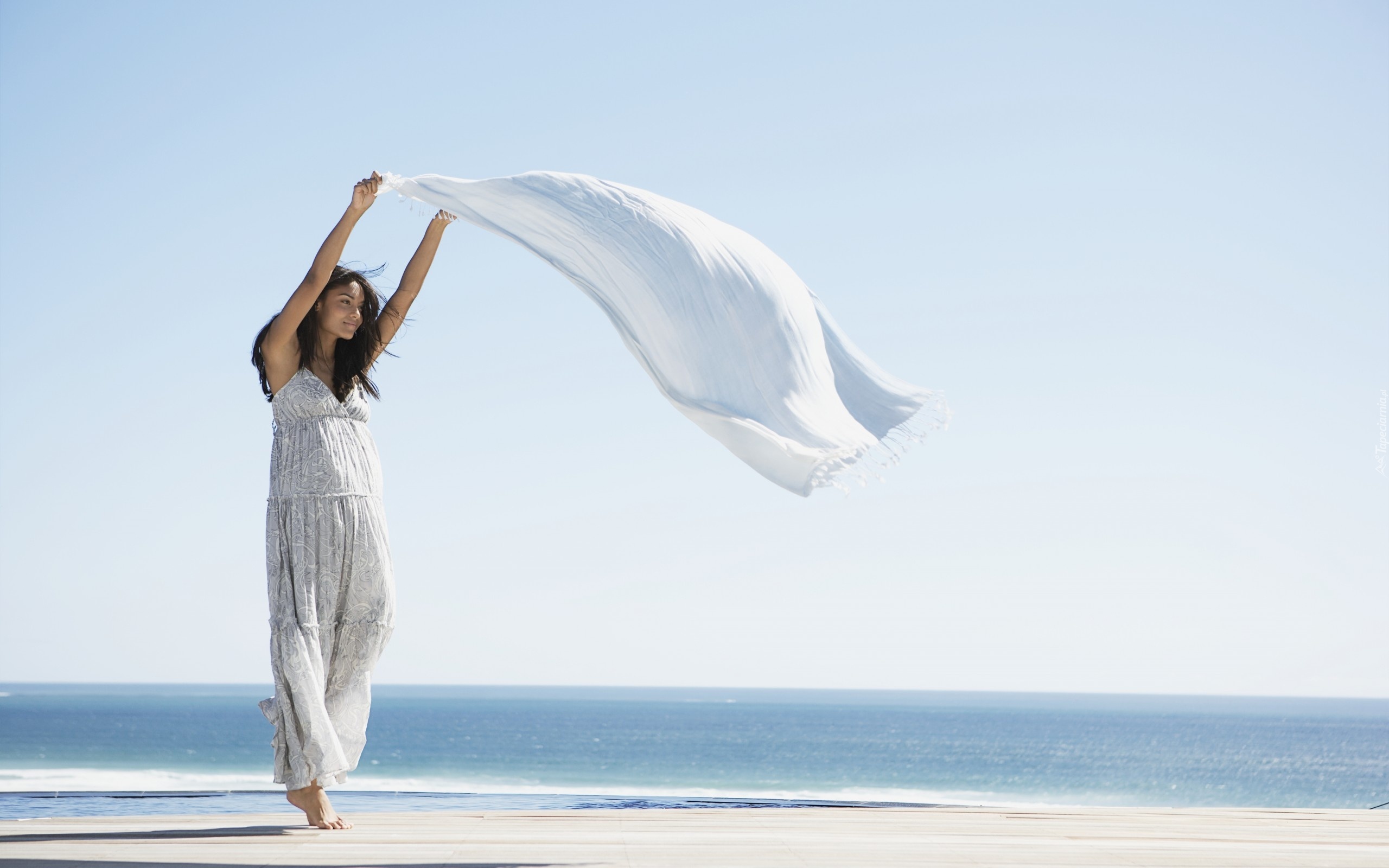Edytor tapety: Piękna, Brunetka, Chusta, Plaża, Morze