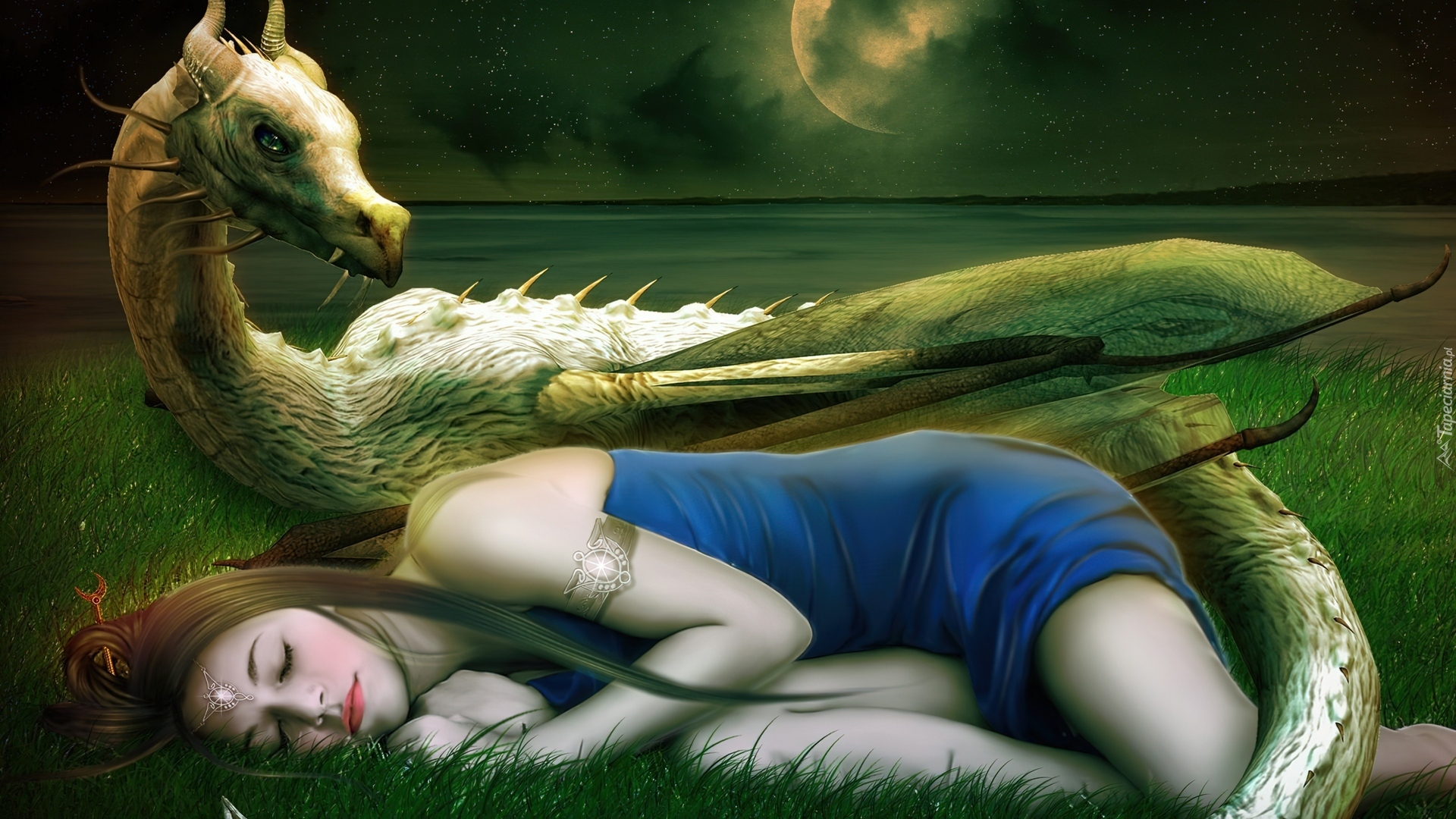 Edytor tapety: Fantasy, Smok, Kobieta