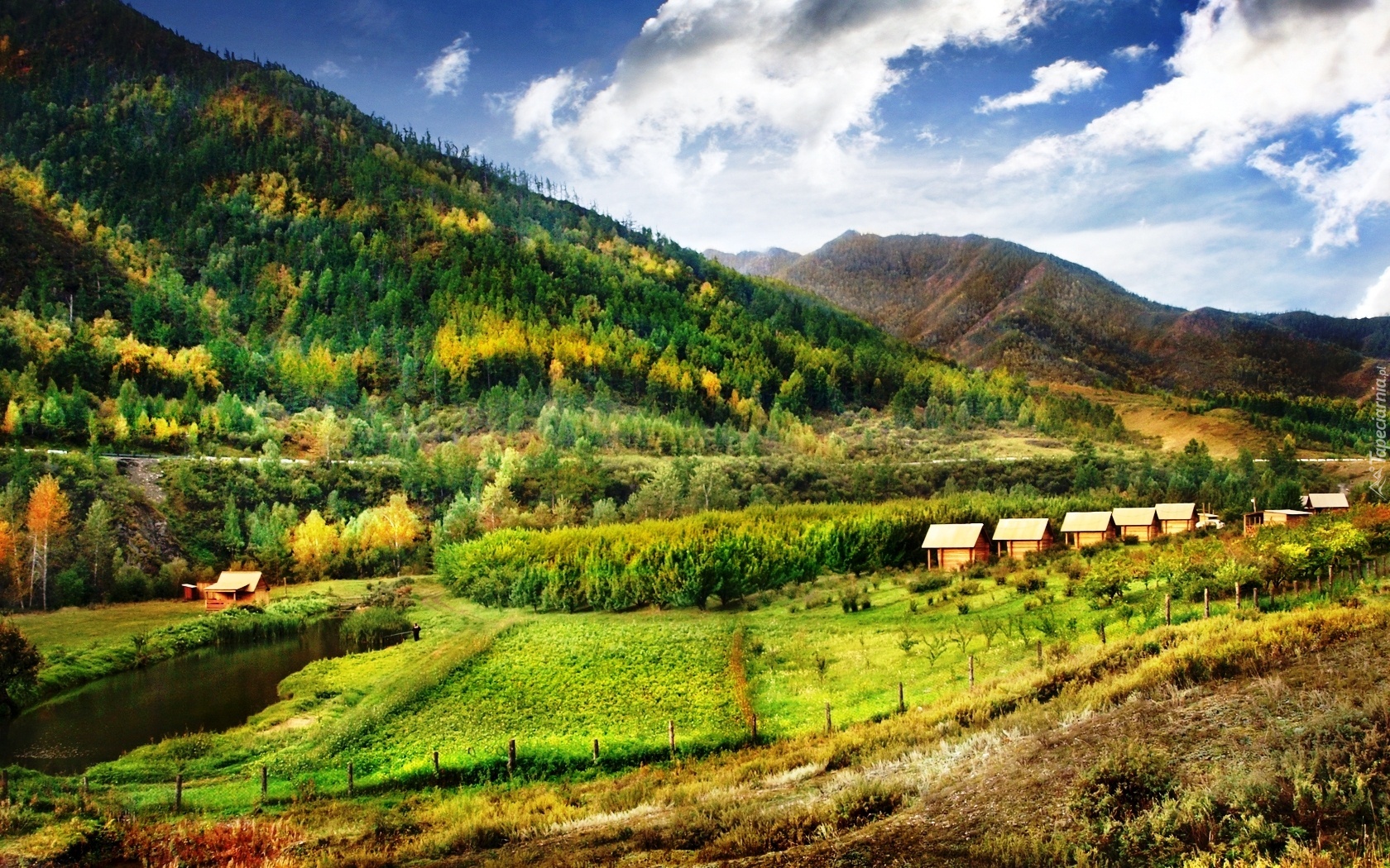 Edytor tapety: Góry, Lasy, Łąki, Domki