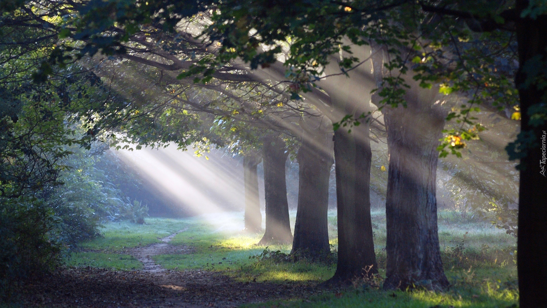Edytor tapety: Leśna, Ścieżka, Przebijające, Światło