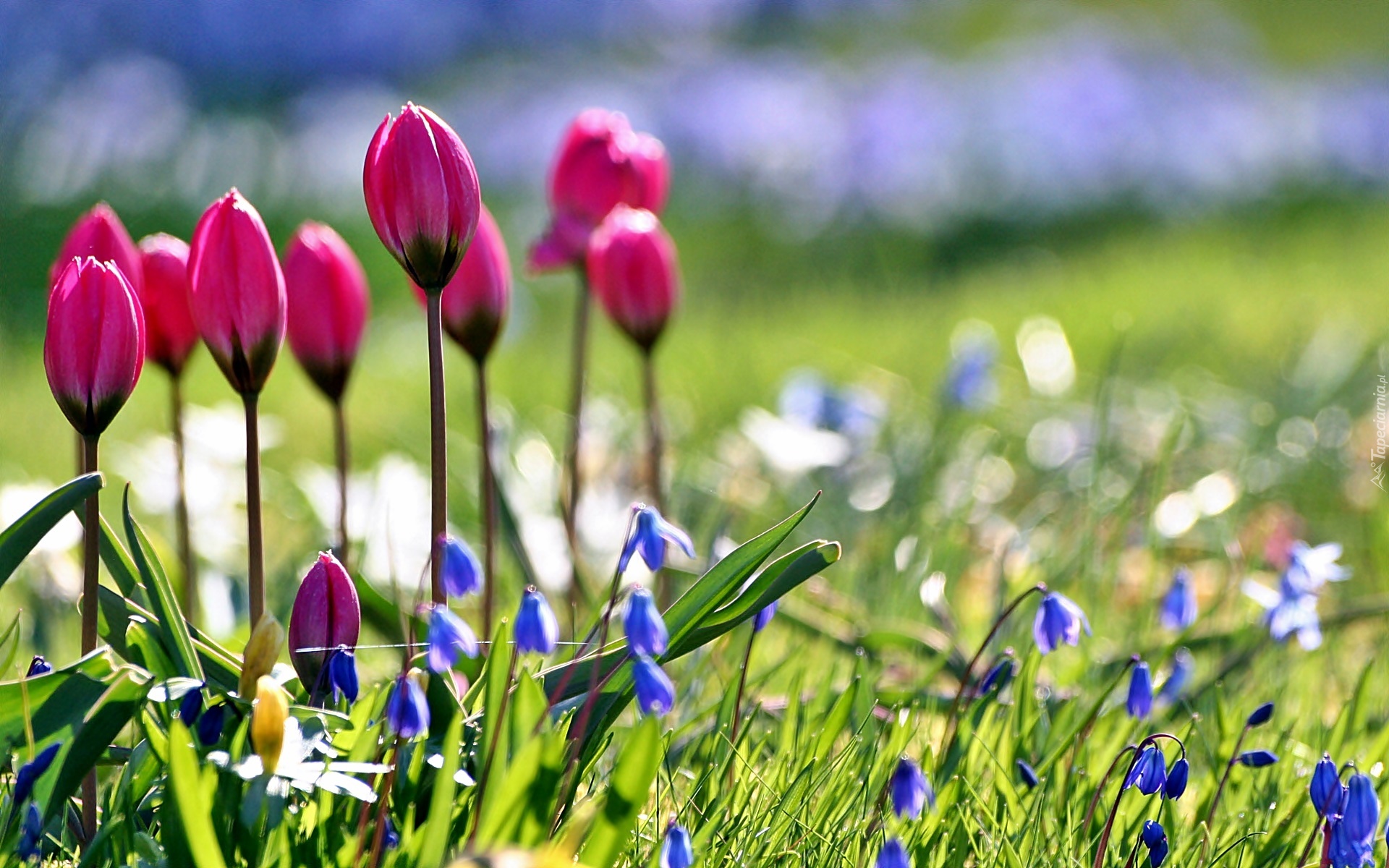 Edytor tapety: Wiosna, Ogród, Tulipany, Cebulice