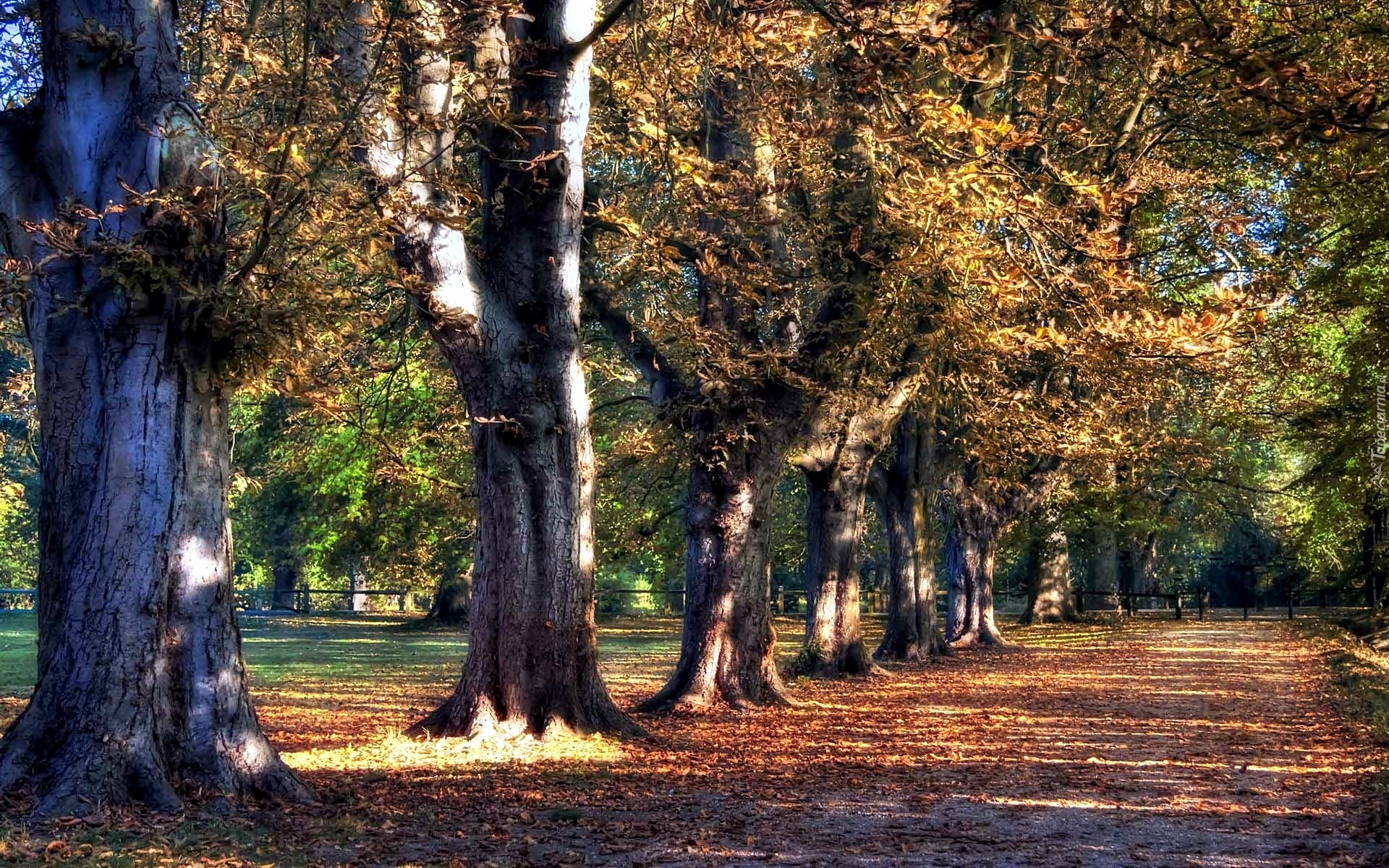 Edytor tapety: Jesień, Park, Aleja, Dęby, Opadłe, Liście
