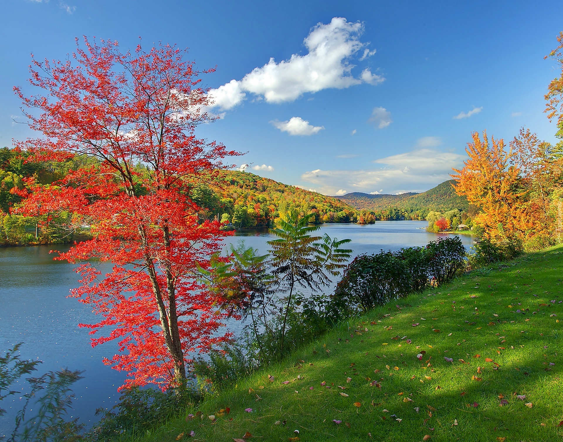 Edytor tapety: Jesień, Vermont, Lasy, Jezioro