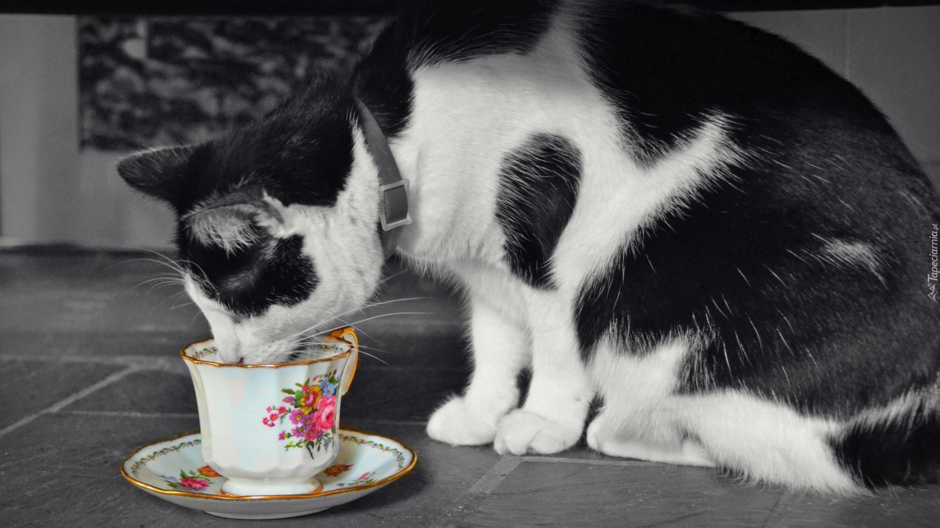 Edytor tapety: Kotek, Filiżanka