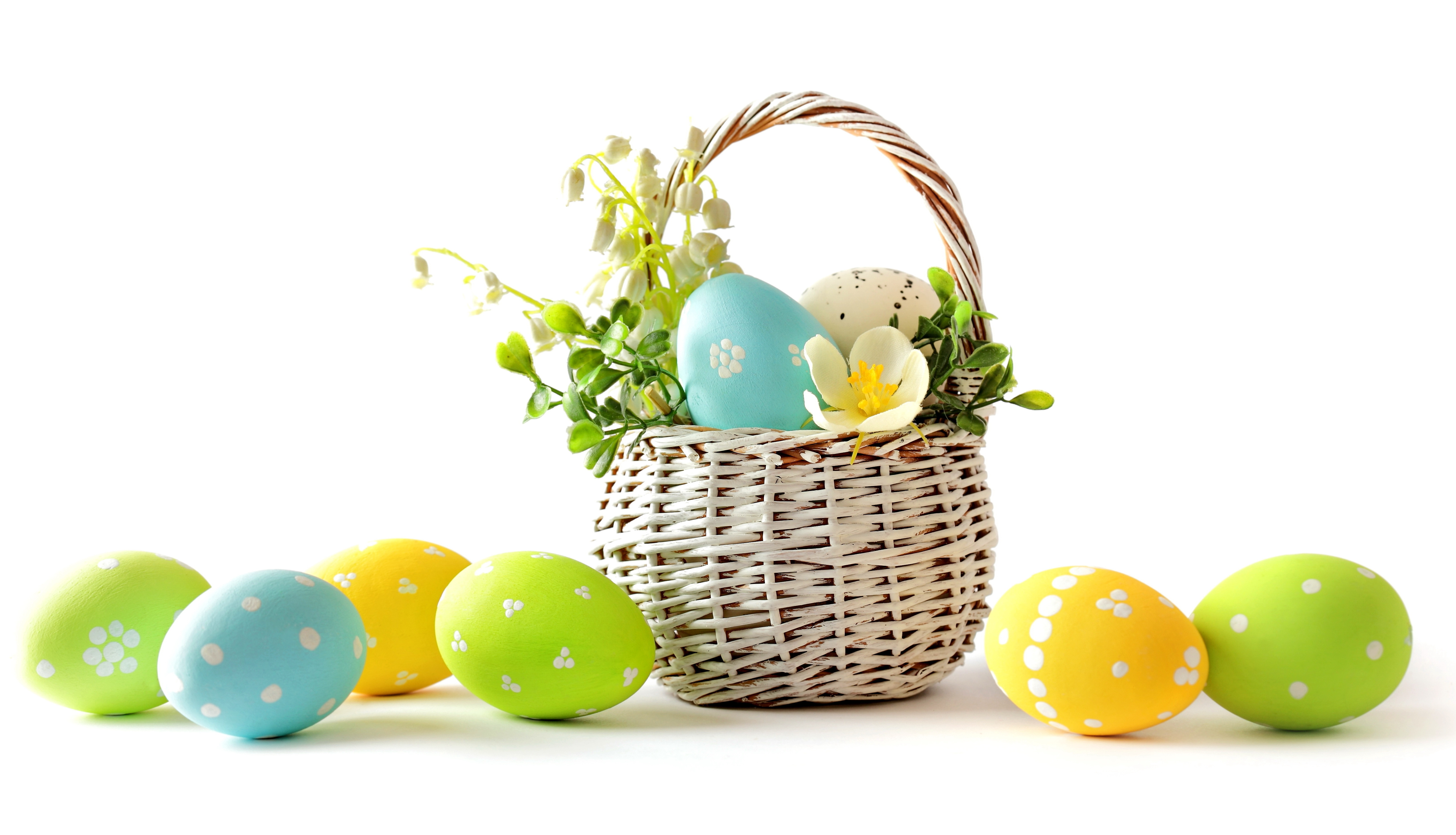 Edytor tapety: Koszyk, Kolorowe, Pisanki, Kwiatki, Wielkanocna, Dekoracja