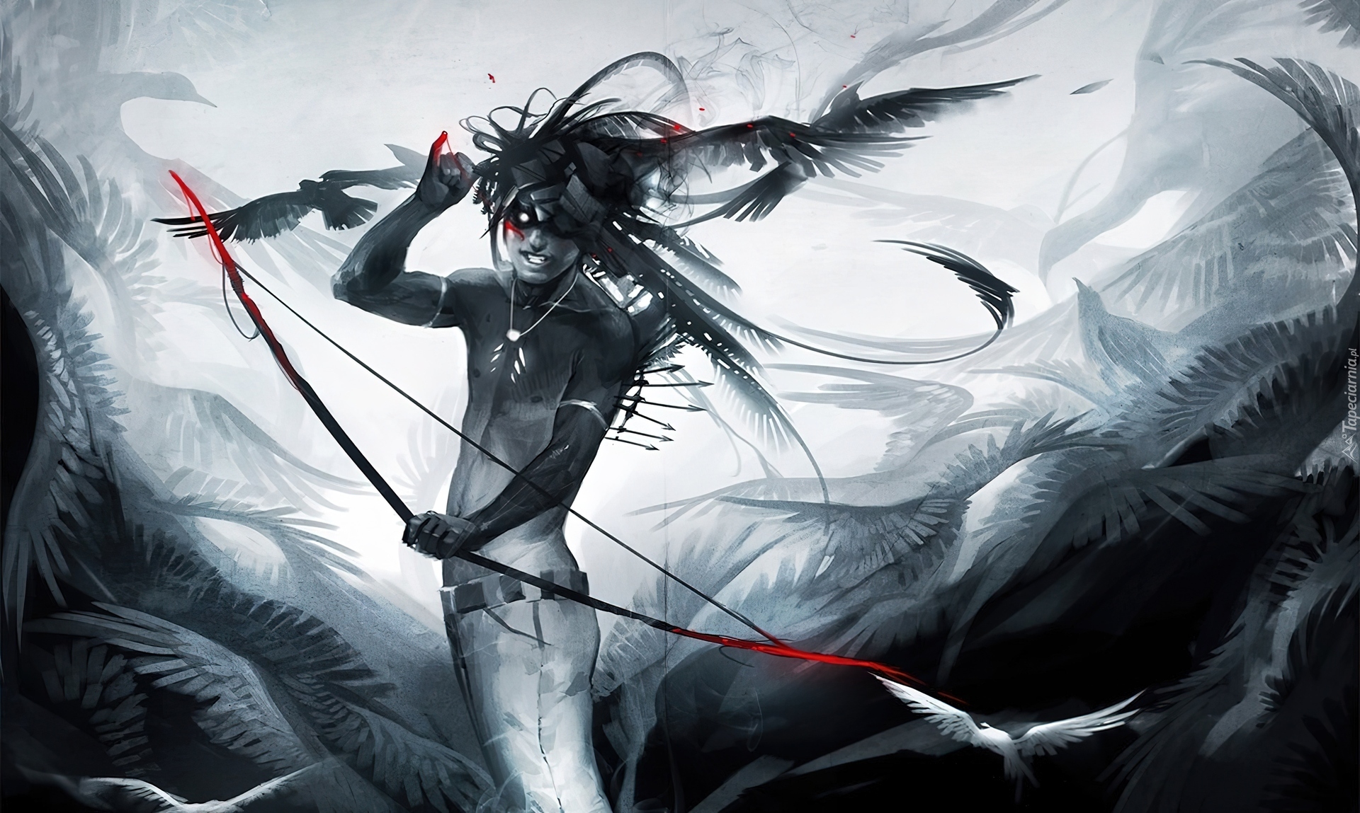 Edytor tapety: Sakimichan, Mężczyzna, Łuk, Ptaki