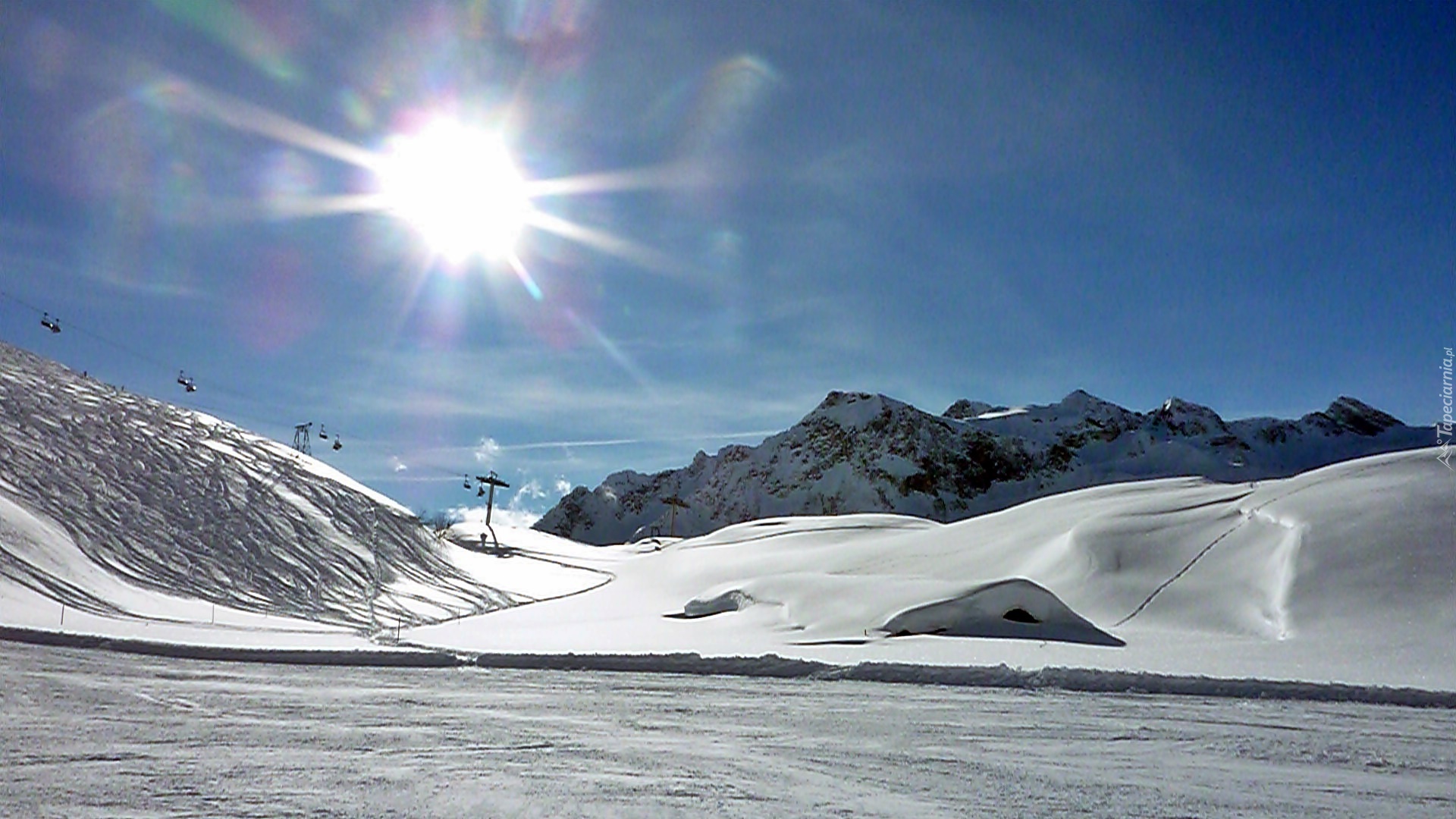 Edytor tapety: Zima, Alpy, Kolejka, Górska, Promienie, Słońca
