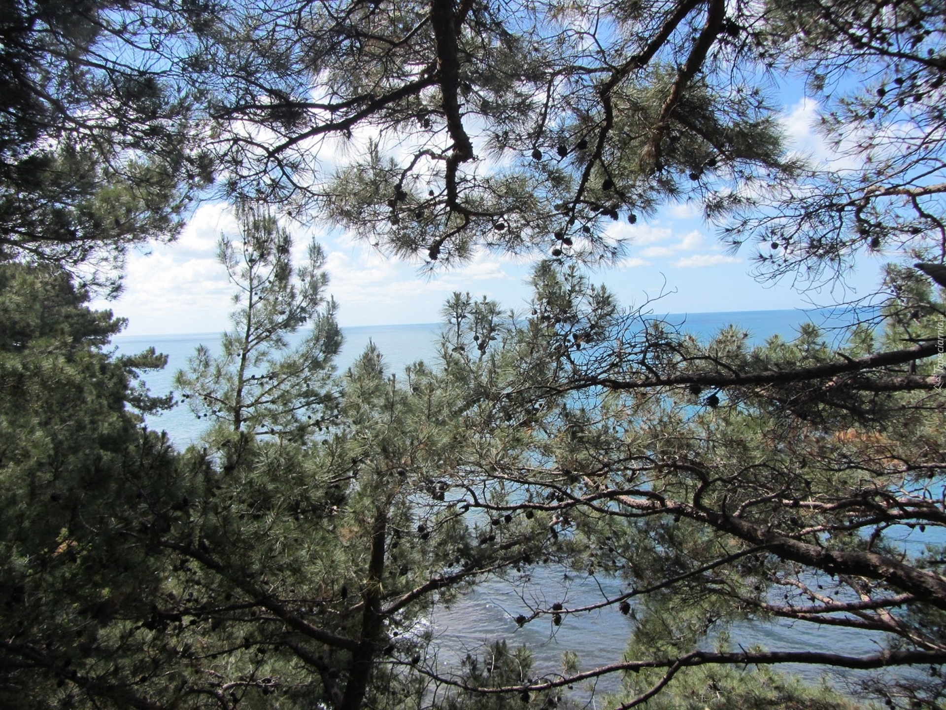 Edytor tapety: Lato, Chmury, Morze, Sosny