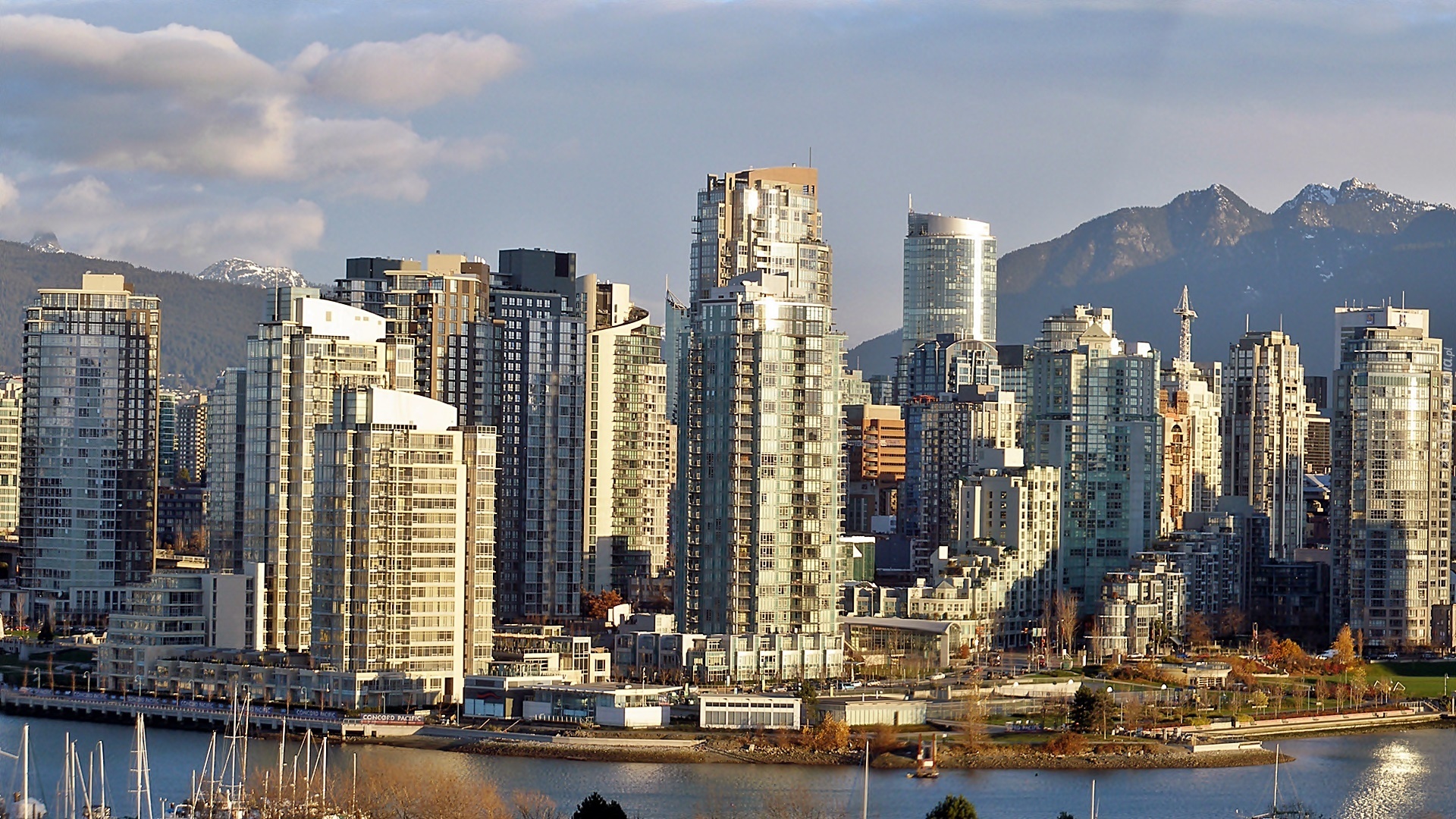 Edytor tapety: Góry, Panorama, Vancouver, Morze, Przebijające, Światło