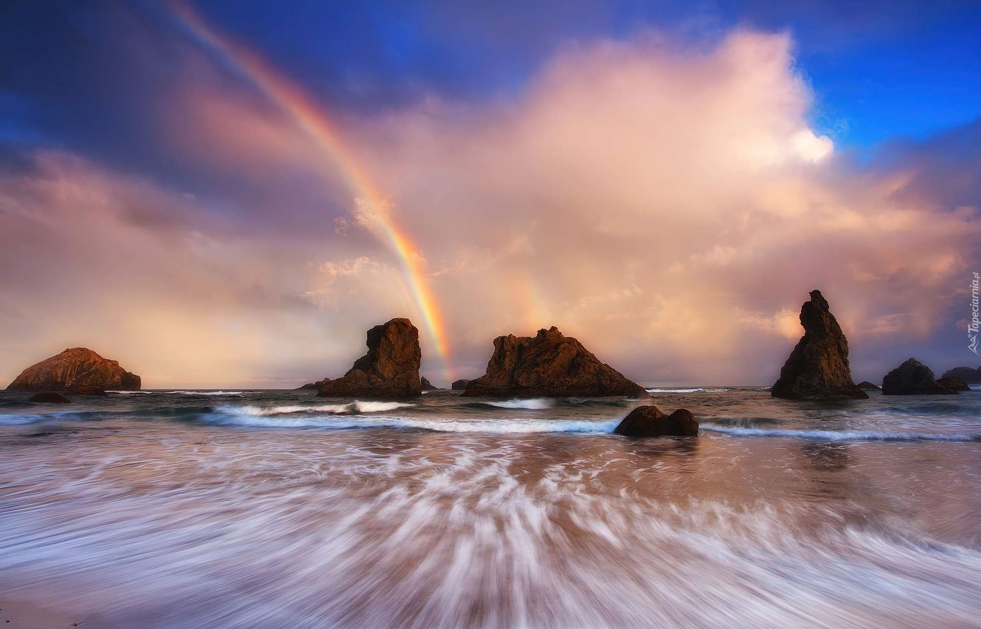 Edytor tapety: Tęcza, Skały, Morze, Chmury