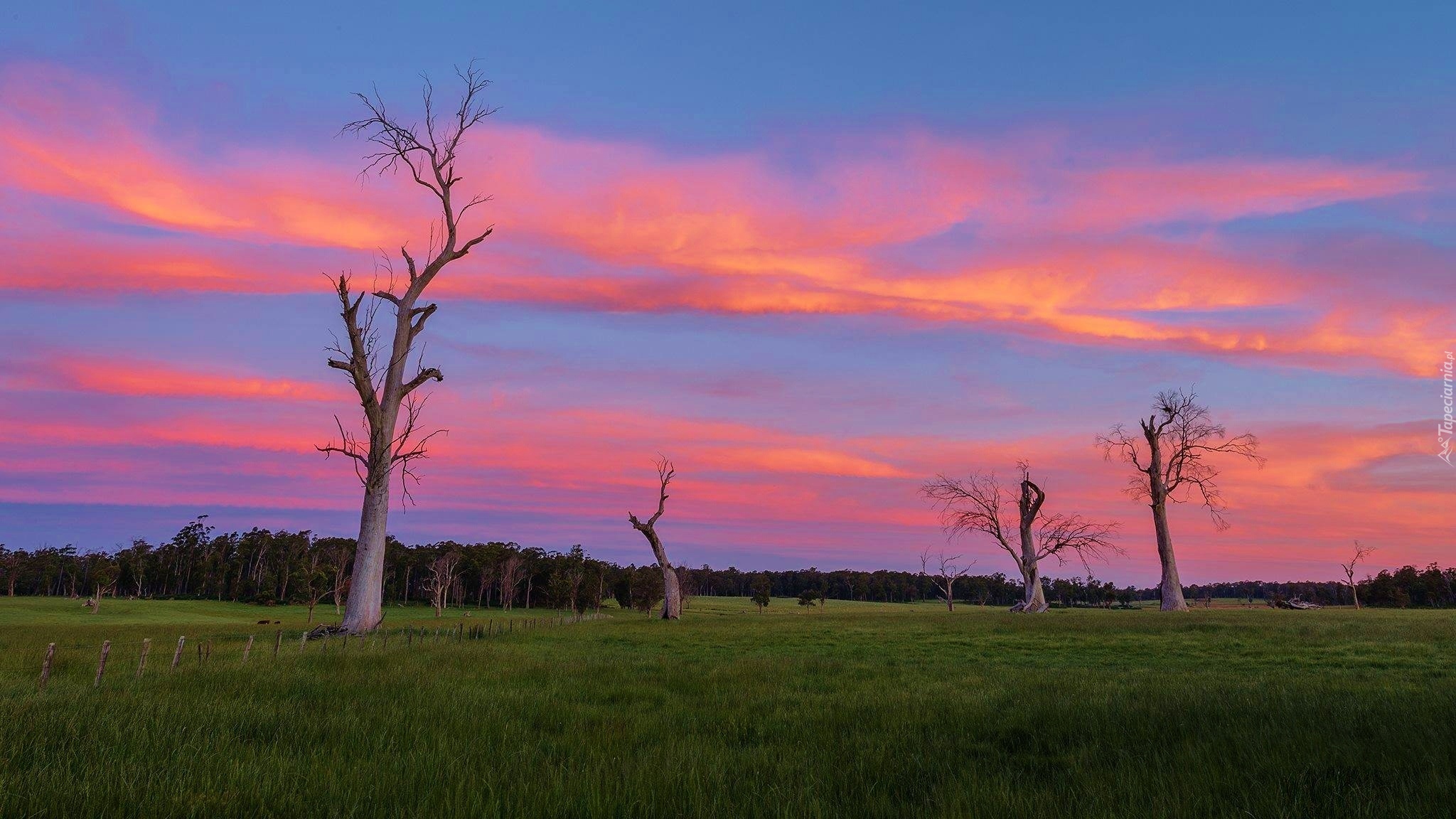 Edytor tapety: Uschnięte, Drzewa, Zachód, Słońca, Trawa