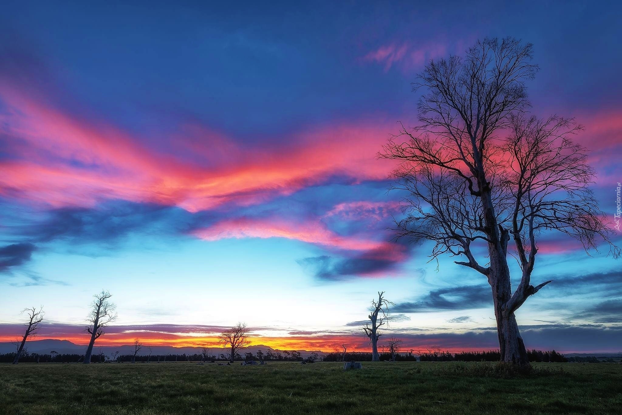 Edytor tapety: Drzewa, Zachód, Słońca