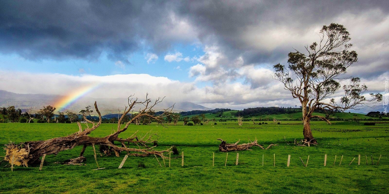 Edytor tapety: Uschnięte, Drzewa, Tęcza, Trawa