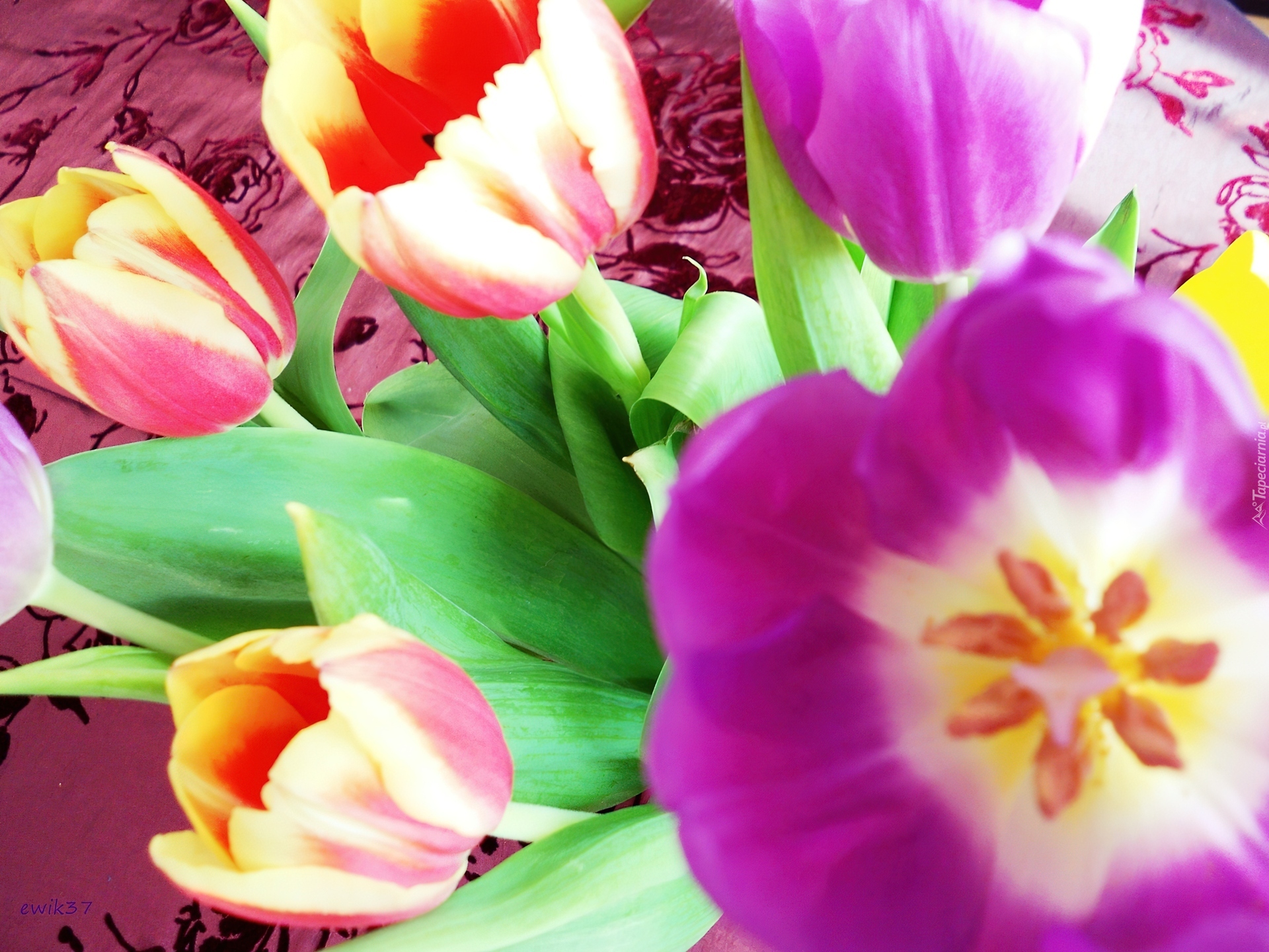 Edytor tapety: Tulipany, Żółto, Czerwone, Fioletowe