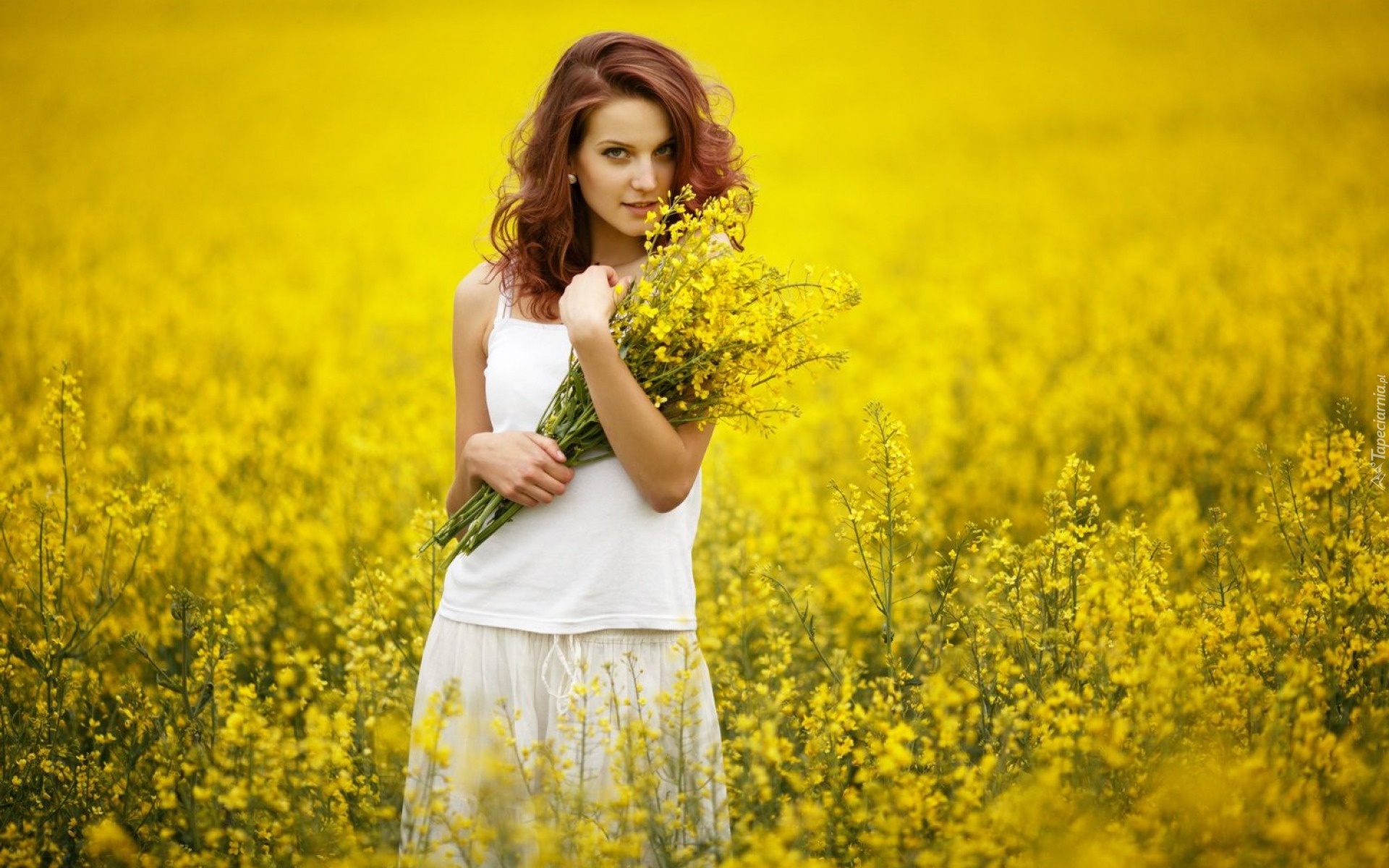 Edytor tapety: Dziewczyna, Pole, Rzepakowe, Bukiecik