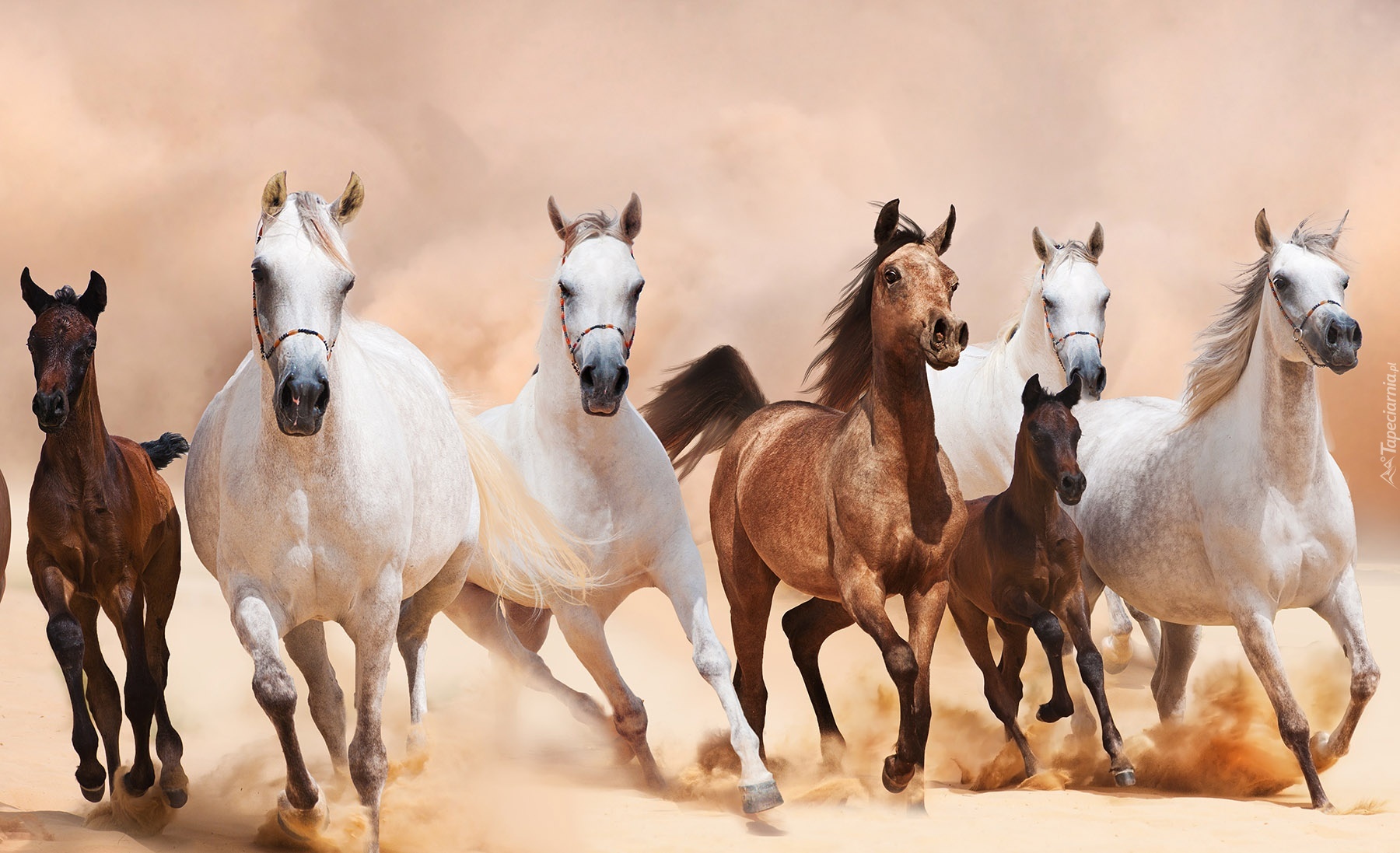 Edytor tapety: Biegnące, Konie, Źrebaki