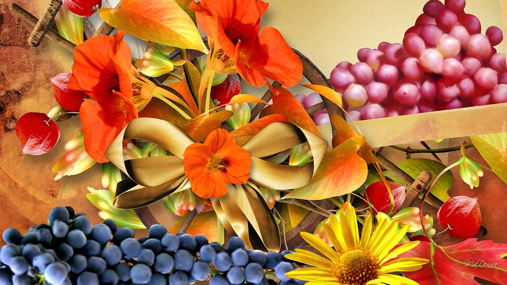 Edytor tapety: Winogrona, Nasturcje, Miechunki, Słonecznik