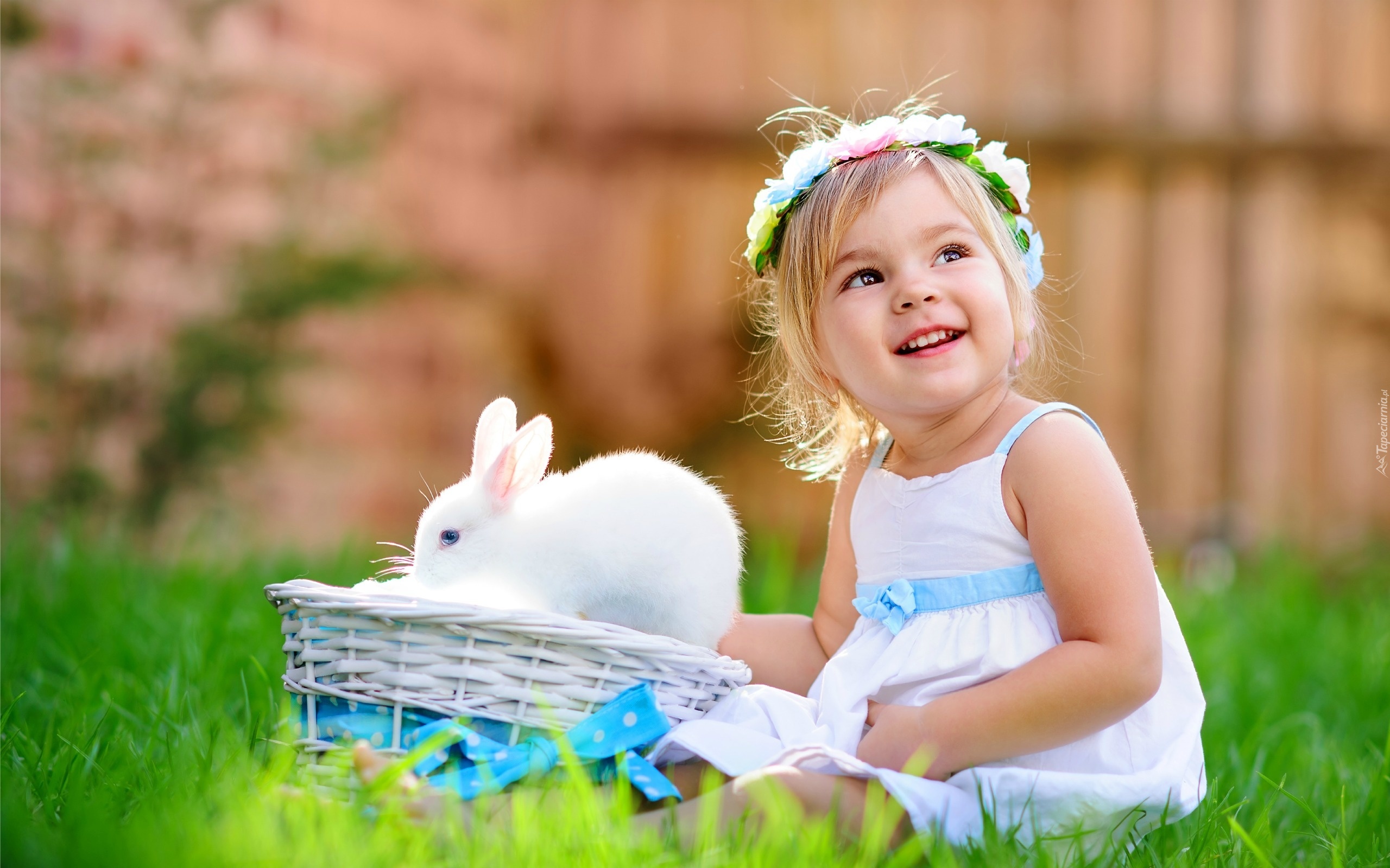 Edytor tapety: Mała, Dziewczynka, Królik, Koszyczek, Łąka