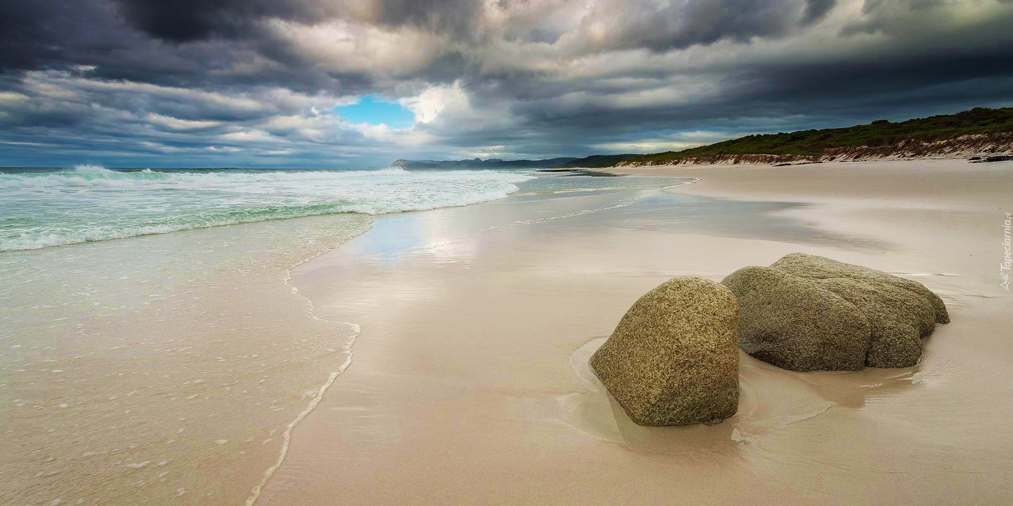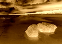 Edytor tapety: Morze, Piasek, Kamienie, Niebo