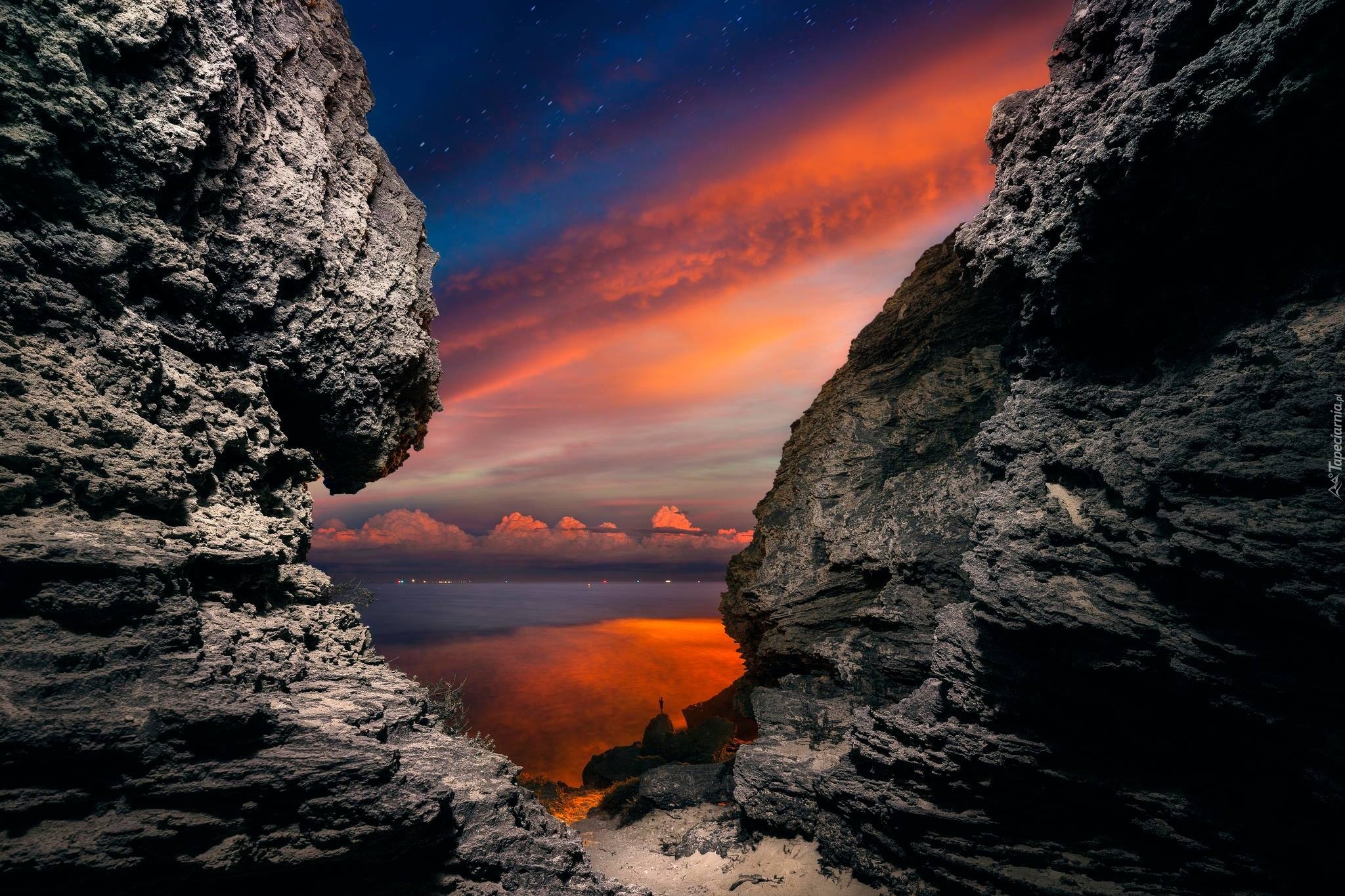 Edytor tapety: Zachód, Słońca, Skały