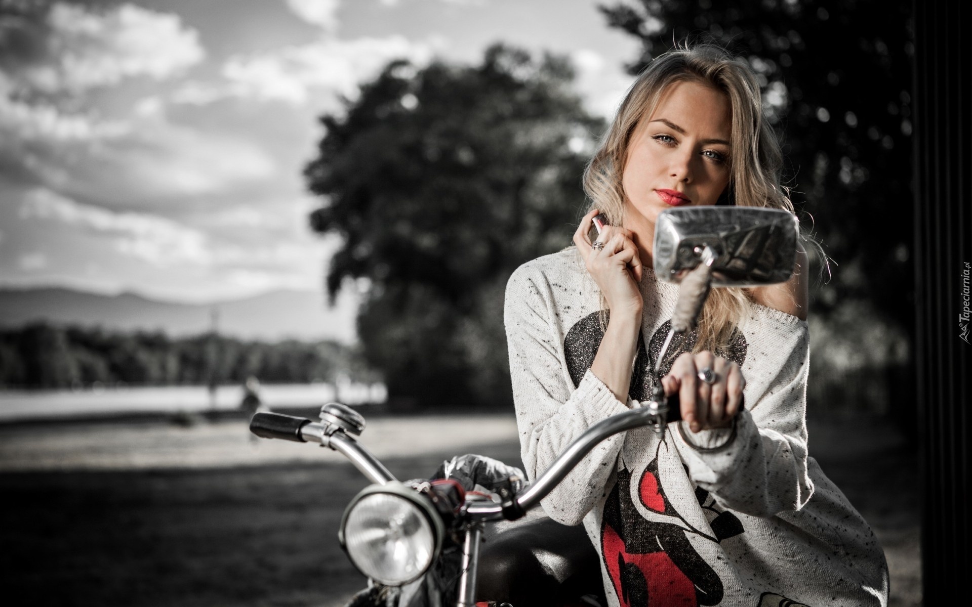 Edytor tapety: Dziewczyna, Rower, Perfumy, Droga, Las